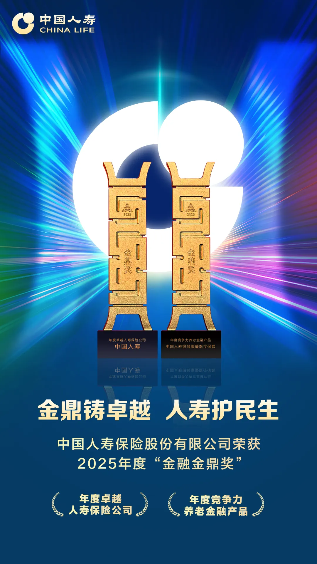 中国人寿寿险公司聚焦老年客户多样化的养老规划和风险保障需求,打造丰富多元的适老化产品体系,并凭借两款极具创新性与竞争力的保险产品,荣获“年度竞争力养老金融产品”,为老年群体送上温暖而坚实的保障。