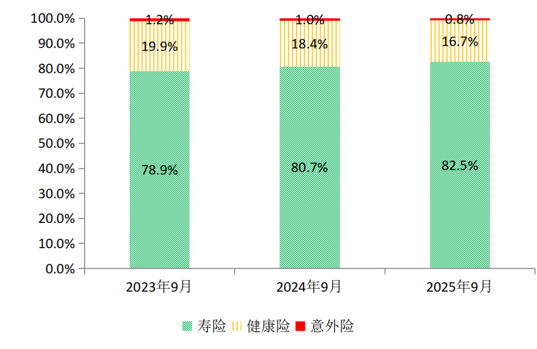 (二)寿险保费增速与占比持续提升,健康险、意外险表现承压