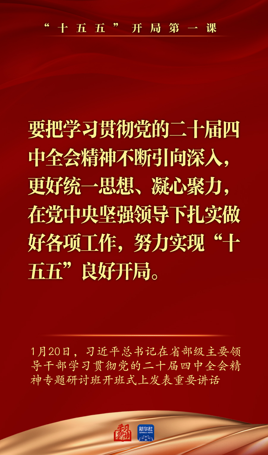 A+ A. A-1月20日,省部级主要领导干部学习贯彻党的二十届四中全会精神专题研讨班在中央党校(国家行政学院)开班。习近平总书记在开班式上发表重要讲话强调,深入学习贯彻党的二十届四中全会精神,努力实现“十五五”良好开局。总书记讲话要点,一起学习领悟。