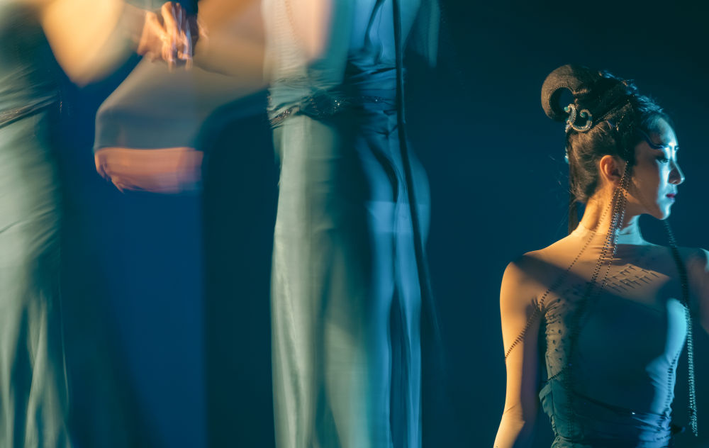 这是舞剧《唯我青白》的演出剧照(2024年8月16日摄)。该剧以器型为线索串联篇章结构,以中华传统美学引领创作,刻画了宋元时期青白瓷手工匠人的典型人物。