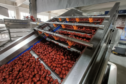 2026年2月4日,来自俄罗斯的游客在海南海口骑楼老街年货集市上选购干果。