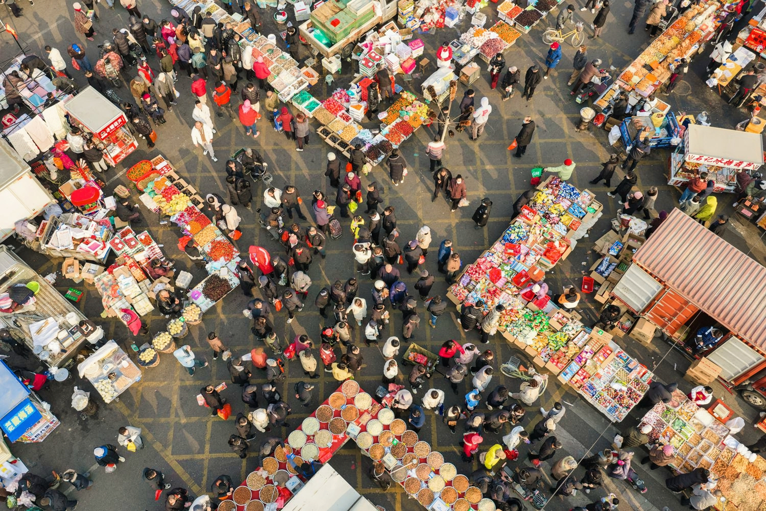 2026年2月10日,位于天津宁河区桥北街道的芦台大集吸引了众多采购年货的顾客(无人机照片)。