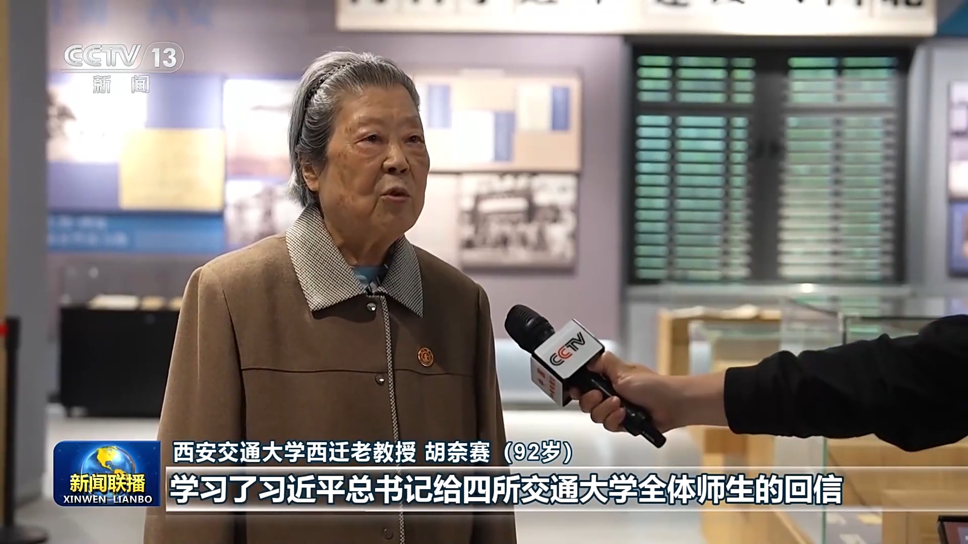 西安交通大学西迁老教授 胡奈赛:学习了习近平总书记给四所交通大学全体师生的回信,心情万分激动。6年前总书记就在西迁博物馆接见了我们,并且勉励我们交大的广大师生要在新征程上,创造属于我们这代人的历史功绩。作为交大西迁人,我们要不忘130年前为救国建校,和70年前为建设新中国迁校的初心,牢记今日建设教育、科技、人才强国的使命。