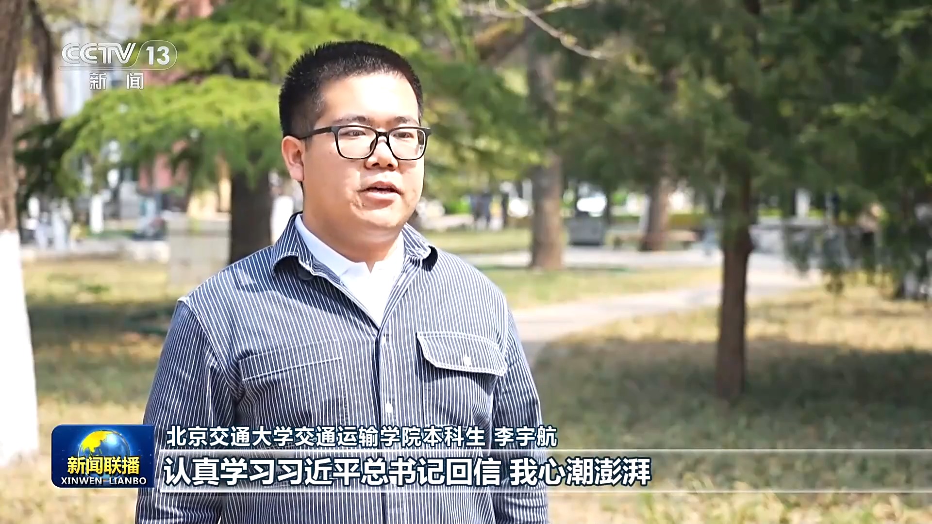 北京交通大学交通运输学院本科生 李宇航:认真学习习近平总书记回信我心潮澎湃。我们要以青春行动接续传承,赓续交大报国传统,深耕交通领域前沿研究,努力把青春汗水挥洒在祖国交通事业的第一线。