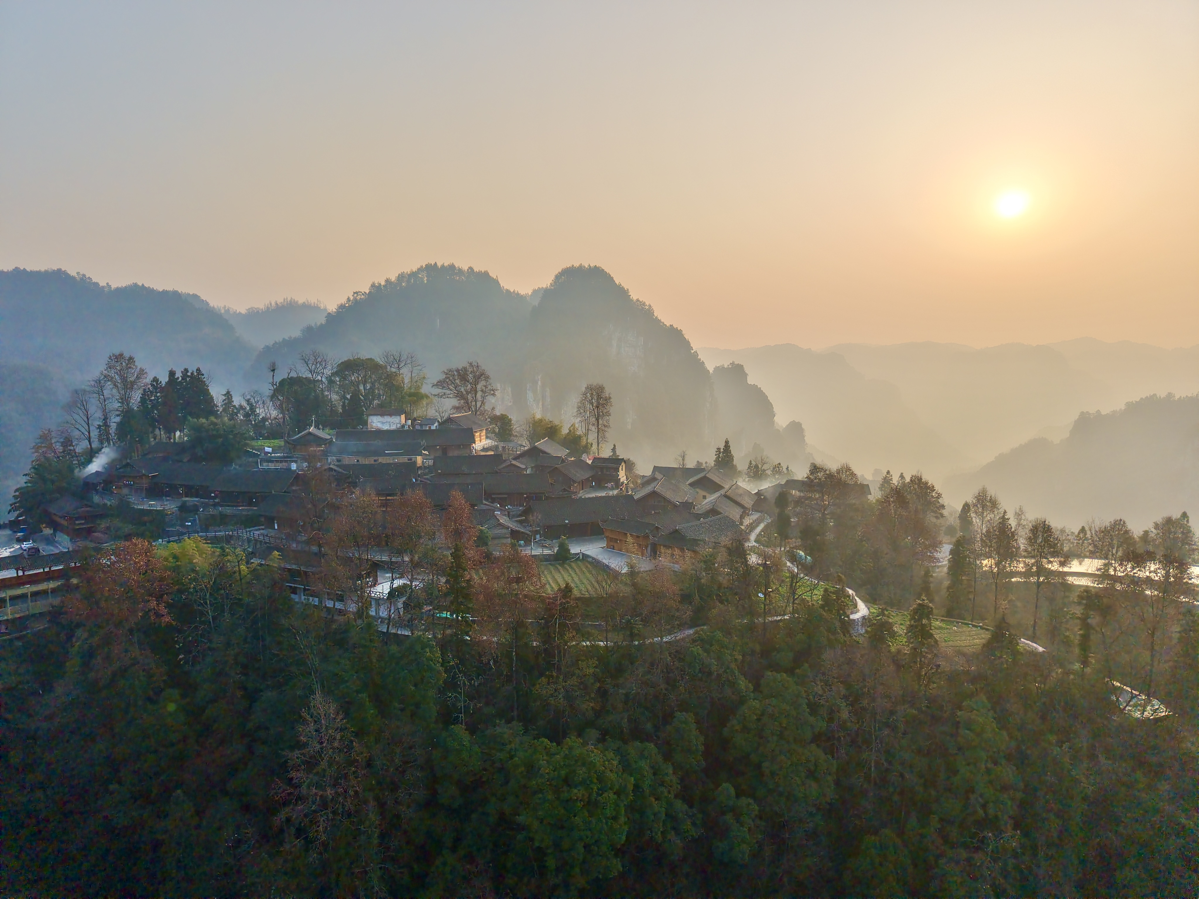 朝阳在十八洞村升起。新华社记者 戴斌 摄