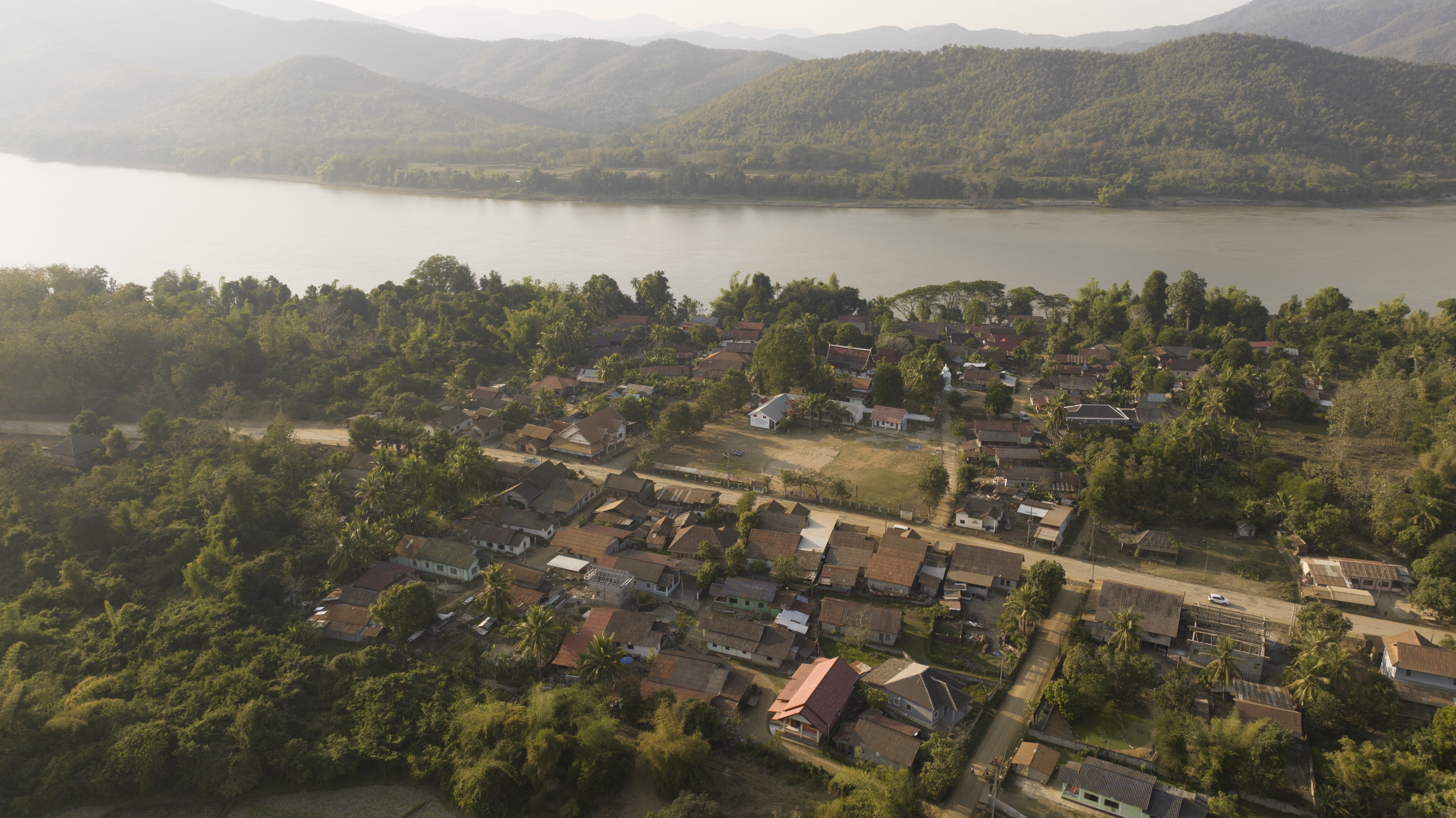 老挝琅勃拉邦省琅勃拉邦市听松村全貌(无人机照片)。新华社发 杜大鹏 摄