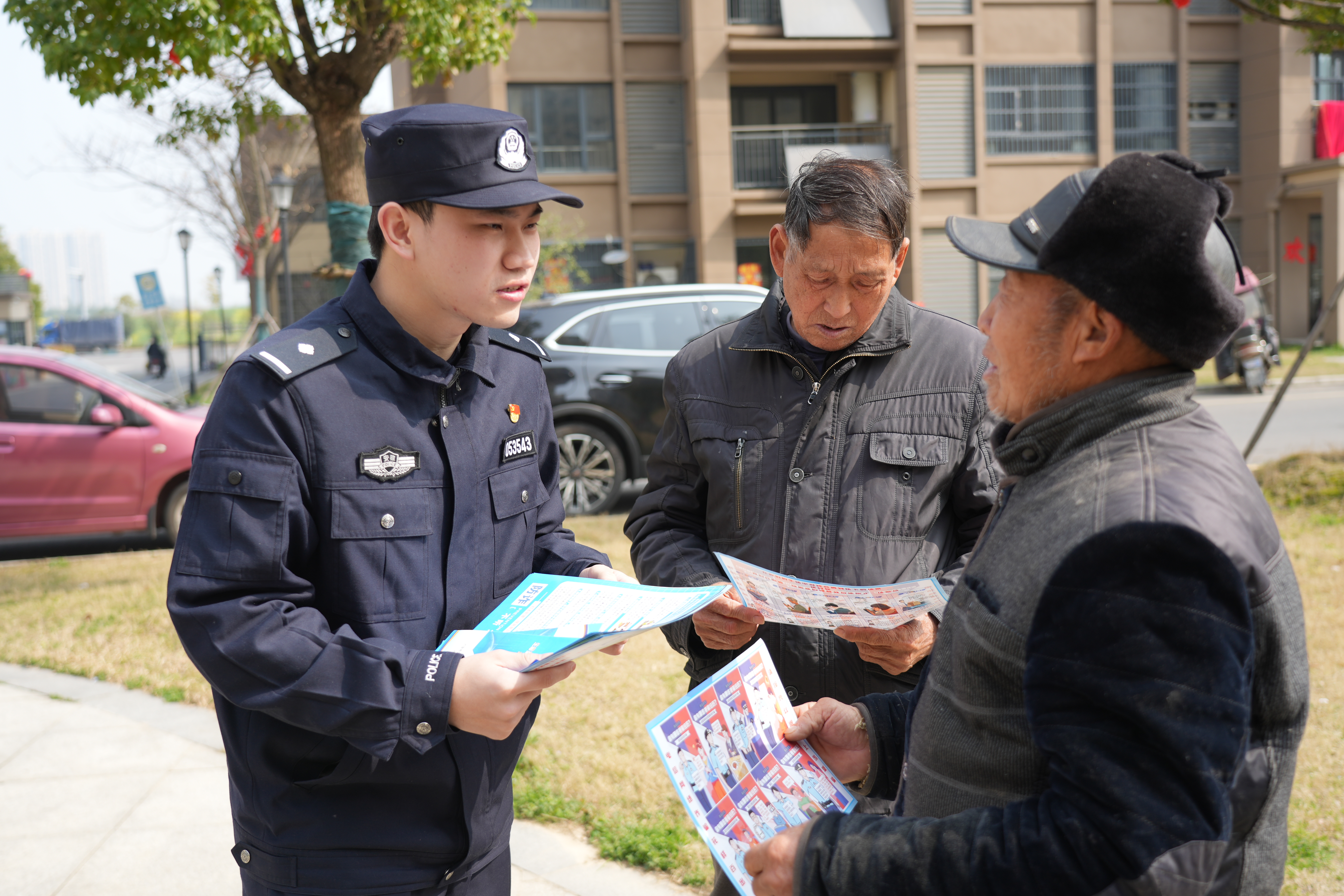 2026年3月8日,安徽省六安市公安局裕安分局城南派出所民警彭世旺在社区进行安全宣传。(受访者供图)