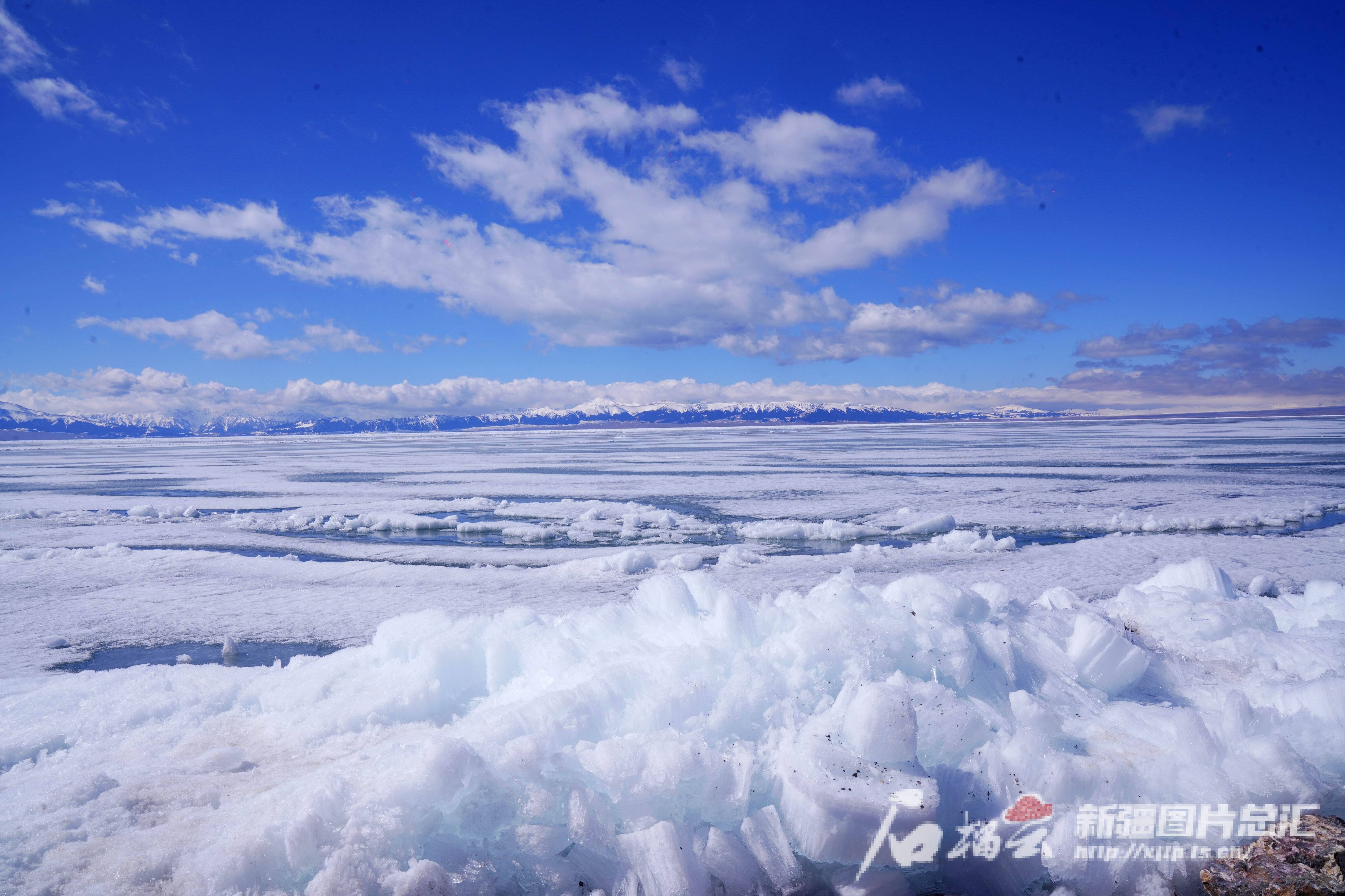 4月20日,赛里木湖边的冰推景观。石榴云/新疆日报记者 张万德摄