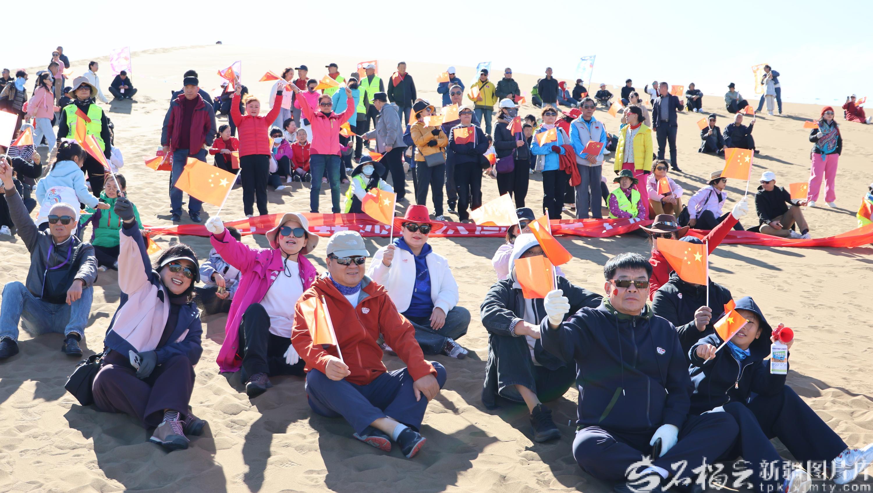 A+ A. A-10月3日,参加叶勒森沙漠休闲体育大会的游客在进行全民健步走活动。图片由木垒县融媒体中心提供