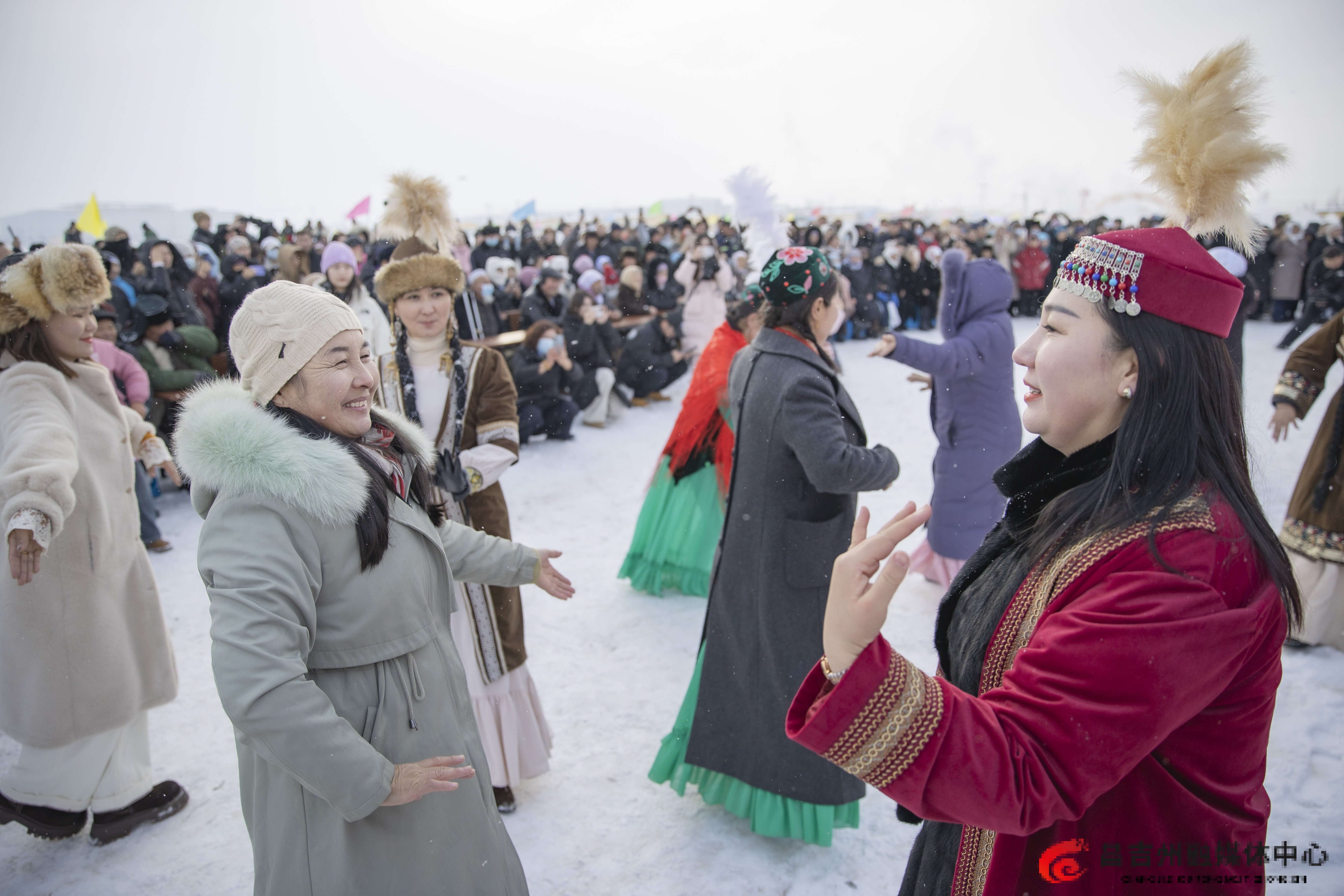 2025年12月27日,在木垒县大南沟乌孜别克族乡,第五届“冬宰欢歌·冰雪盛会”民俗文化旅游活动热闹开幕。活动现场,游客们共同跳起舞蹈《黑走马》。