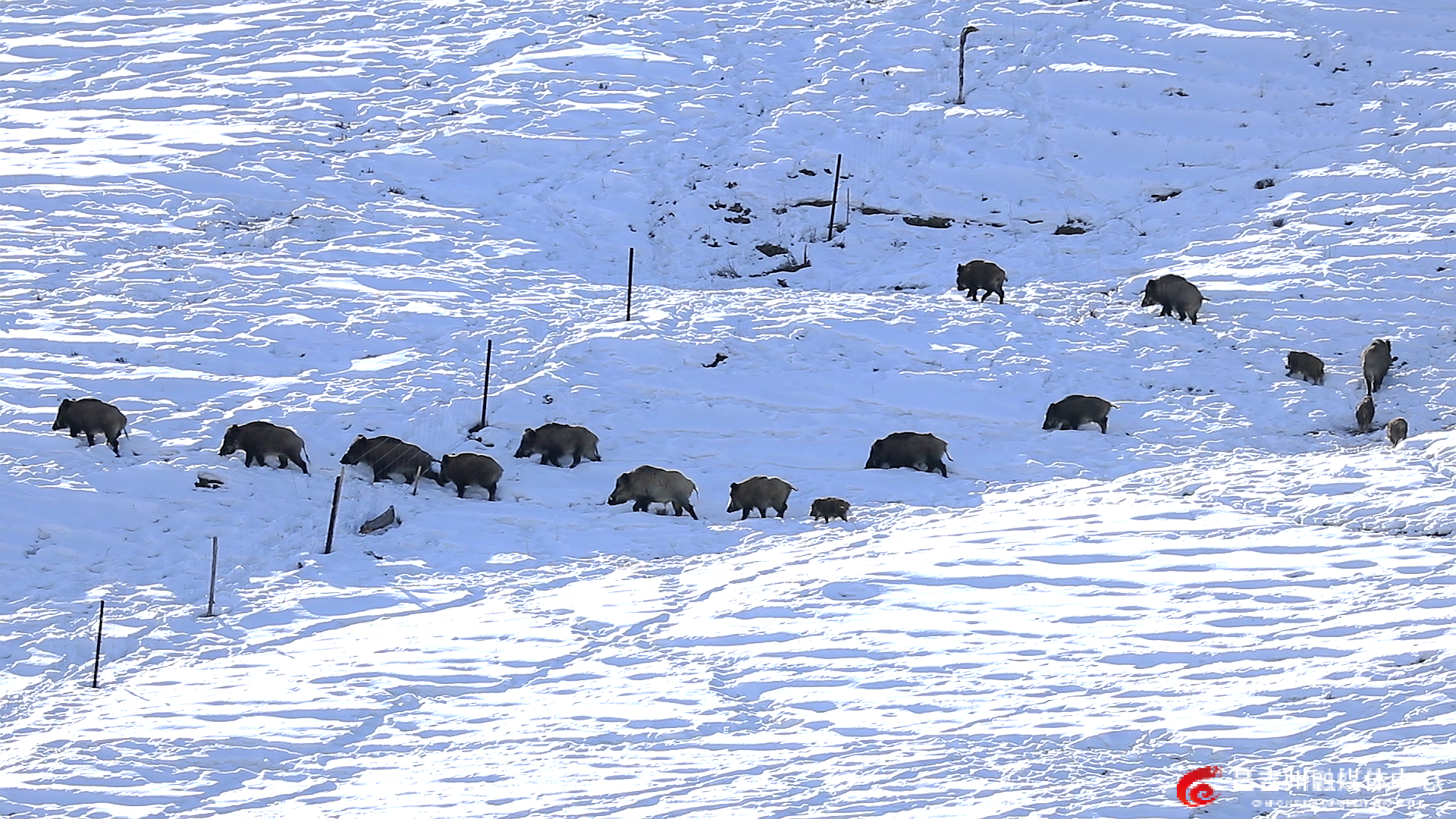 A+ A. A-丝路昌吉/昌吉州融媒体中心讯(通讯员 刘华 成石麟 杨勇报道)1月,江布拉提草原晴空如洗,皑皑白雪为草场披上银装。沉寂的雪原上,天山马鹿、野猪等野生动物纷纷走出森林,在开阔的草场觅食、嬉戏,为冬日秘境增添了灵动与生机。