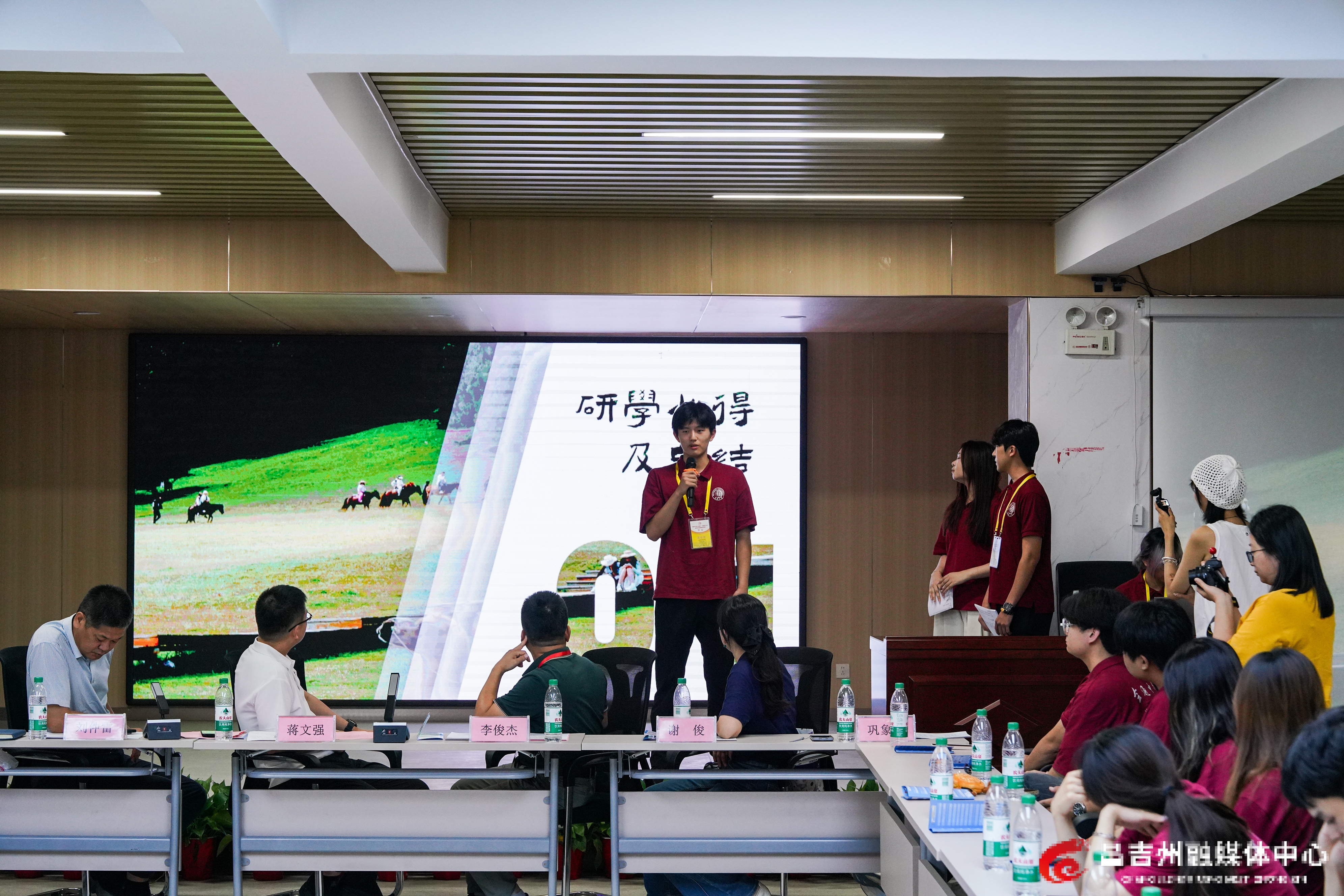 8月12日,参加“泉昌情·心连京·丝路缘——祖国情·中华行”赴新疆(昌吉)研学活动的华侨大学师生在结营仪式上作研学心得报告。记者常谊谊 摄