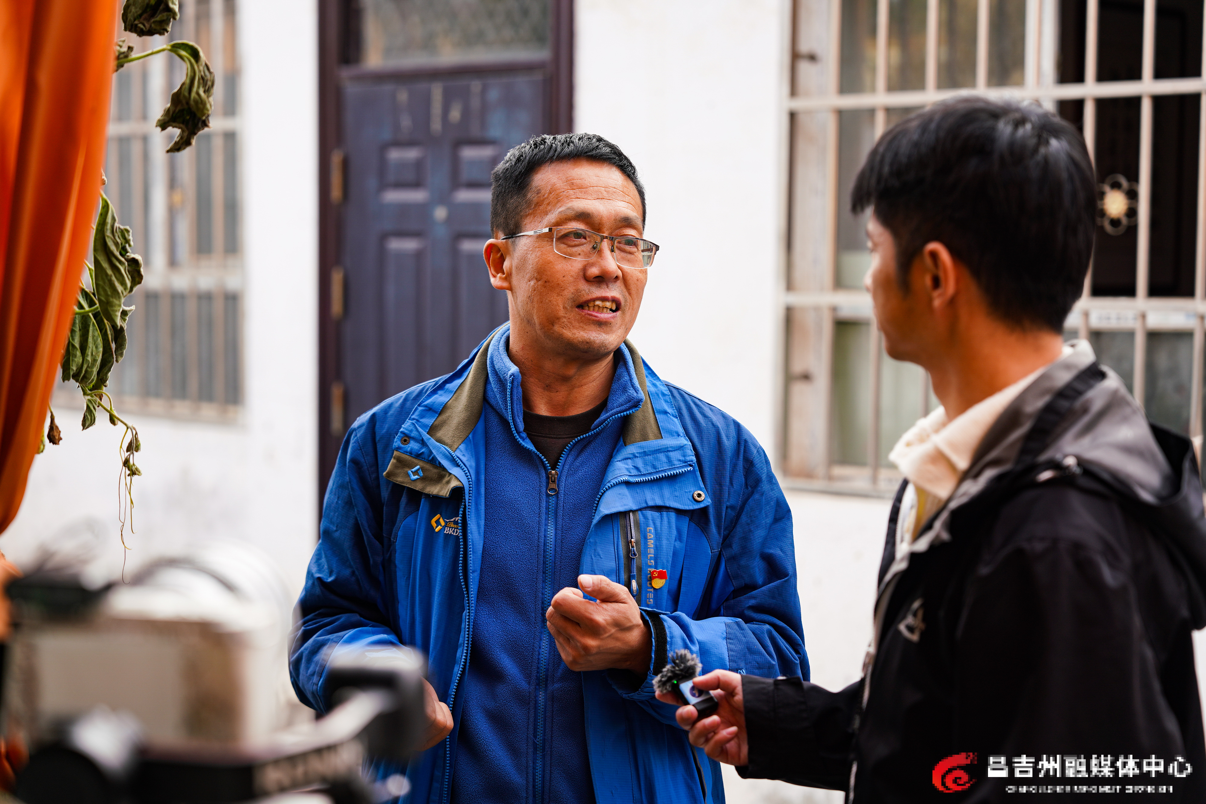 10月18日,呼图壁县五工台镇幸福村驻村第一书记王春(左一)接受“重走林公路,弘扬援疆情”采访团记者的采访。记者常谊谊 摄