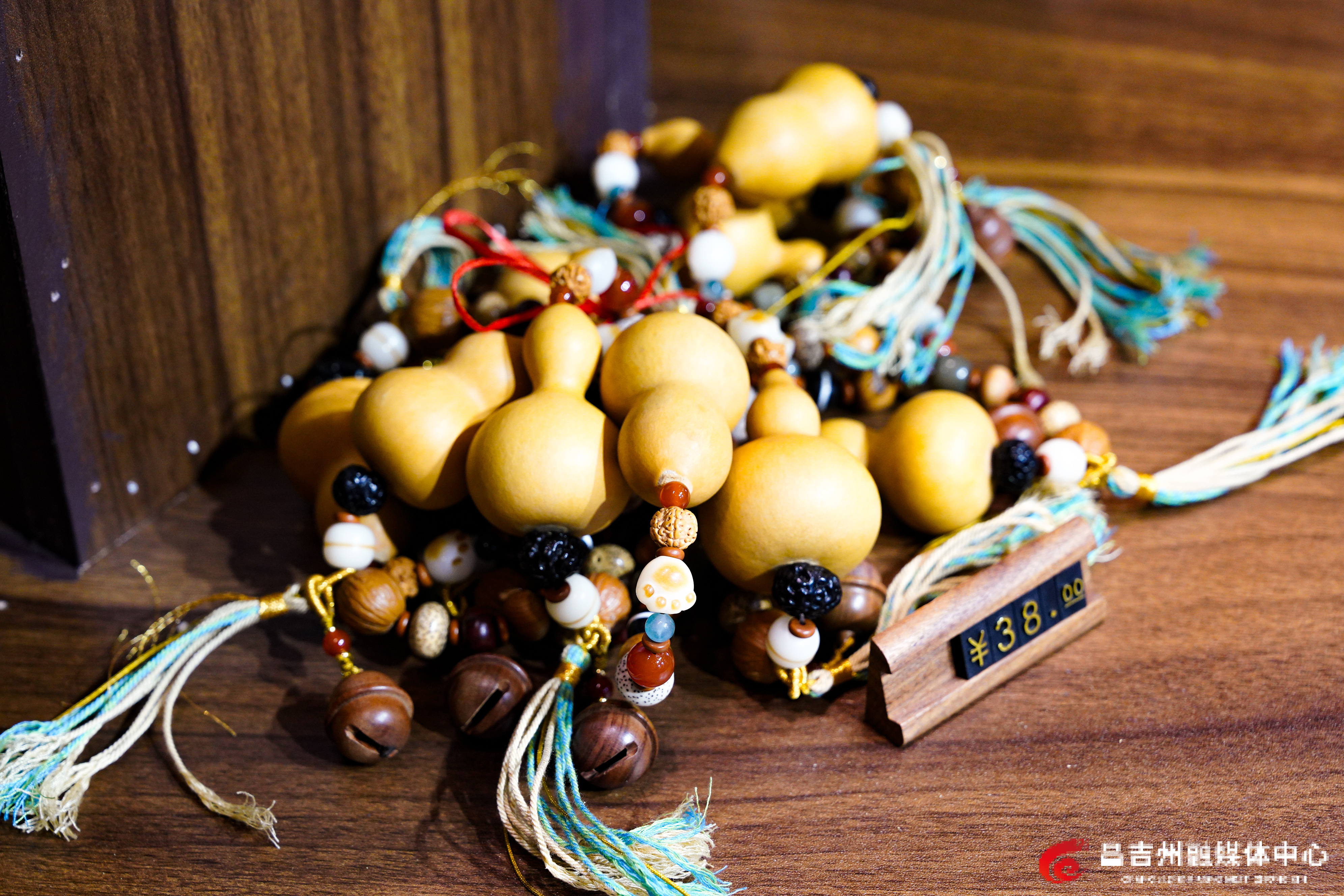 10月18日,呼图壁县五工台镇幸福村葫芦园展厅内销售的葫芦工艺品。记者常谊谊 摄