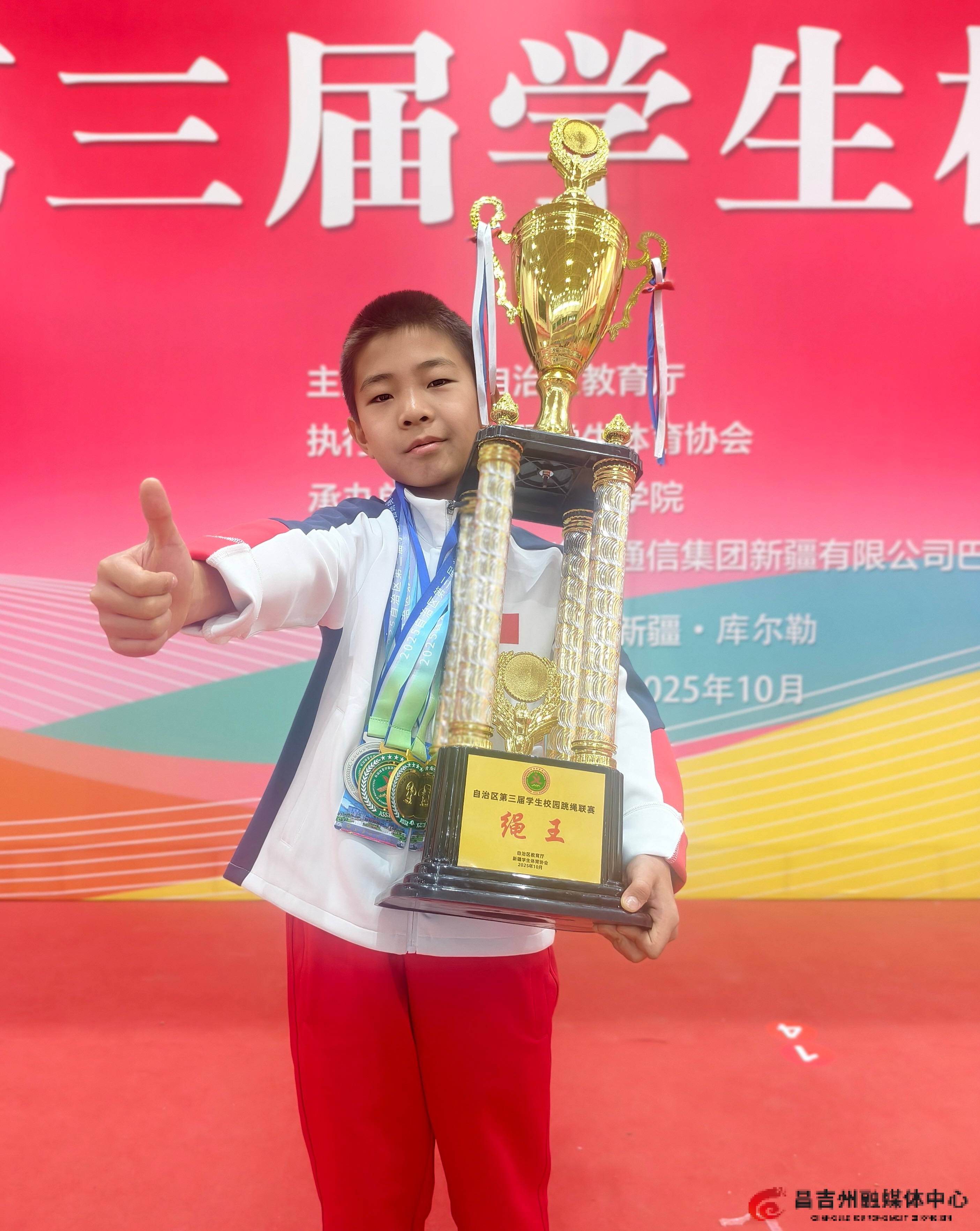 A+ A. A-丝路昌吉/昌吉州融媒体中心讯(记者 荷苒·马汗报道)10月24日至27日,自治区第三届学生校园跳绳联赛在新疆科技学院金河校区体育馆举办。代表昌吉州参加小学组与中学组赛事的阜康市24名运动员表现卓越,不仅在小学组与中学组分别以95分和97分的成绩双双荣获团体第一名,更在单项赛事中实现奖牌总数“断层领先”。尤其值得一提的是,阜康市晋阜小学六年级(5)班学生常铭凭借出色发挥,勇夺本届赛事“绳王”称号。