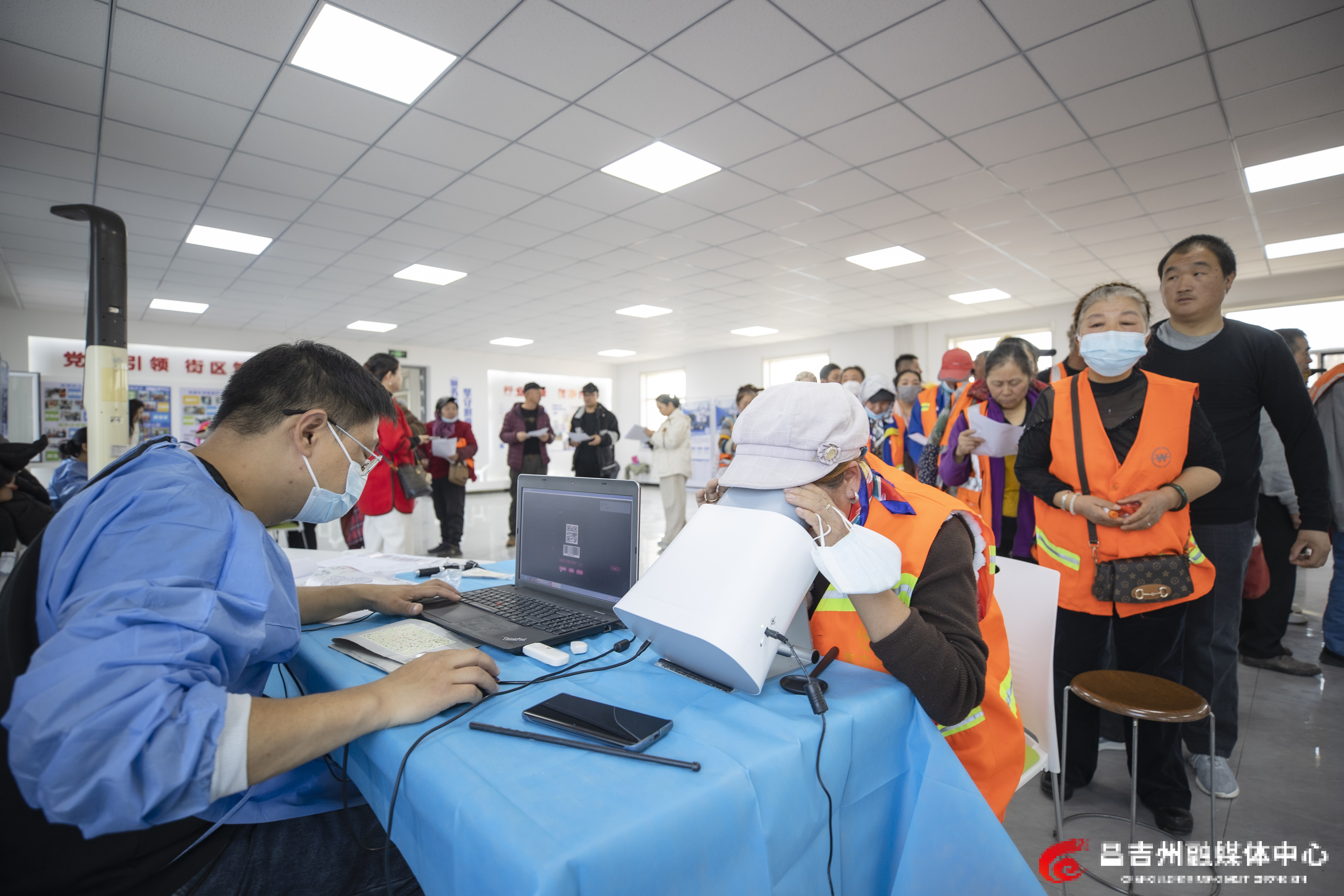 10月28日,在昌吉市环卫中心市容大队,环卫工人正在做眼底检查。