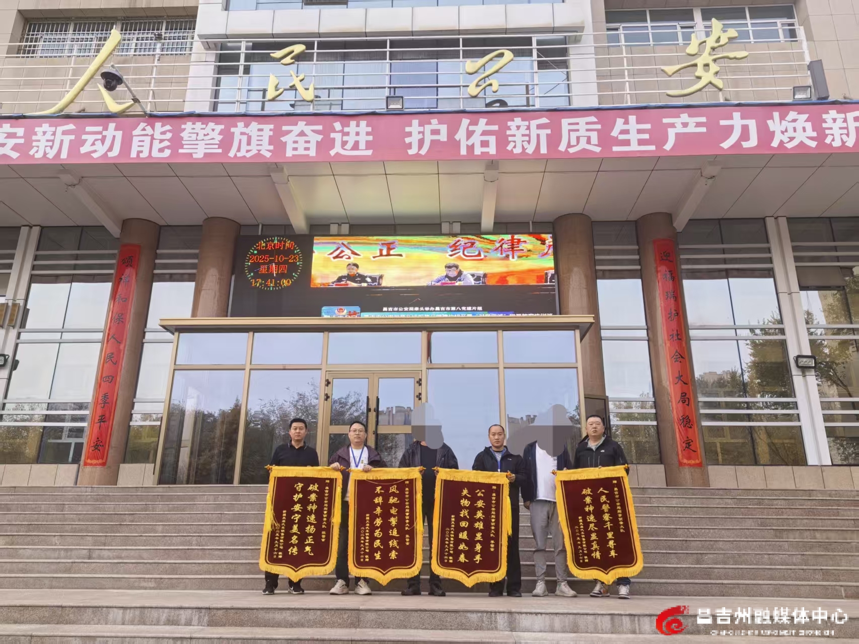 两起案件的连续侦破,让受害人程先生和齐先生的经济损失得以挽回,更让他们感受到了人民警察守护正义的力度与温度。为表达由衷的谢意,他们特意定制了4面锦旗,于10月29日一同送到办案民警手中。锦旗上,“人民警察千里寻车 破案神速尽显真情”“公安英雄显身手 失物找回暖如春”等烫金大字,不仅是对民警艰辛付出的最高认可,也生动诠释了“警民一家亲”的深厚情谊。