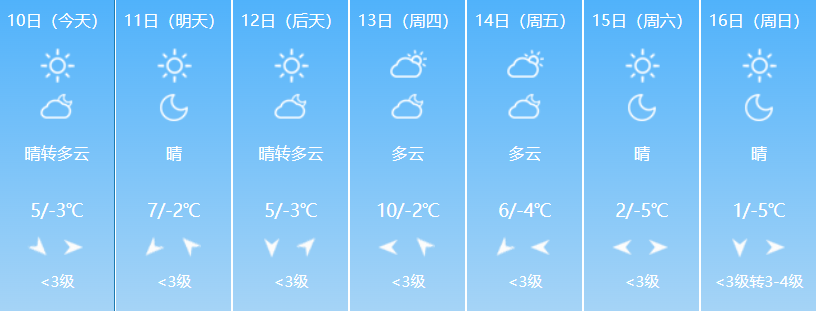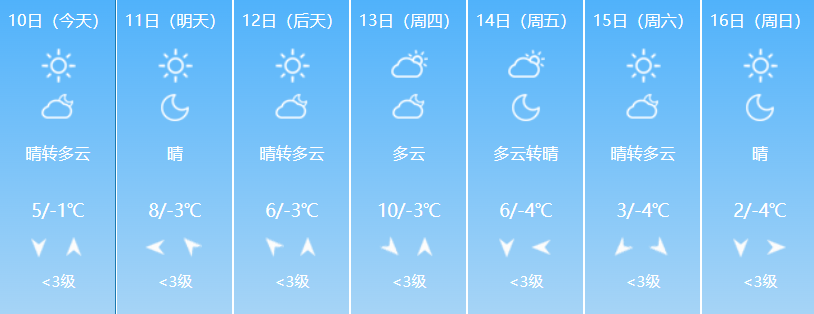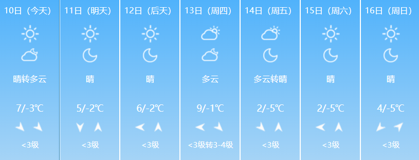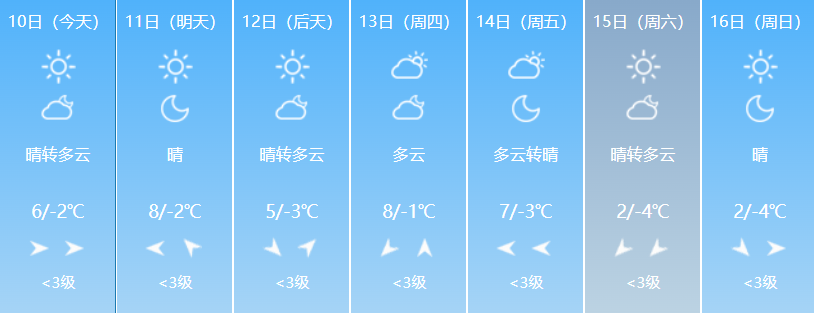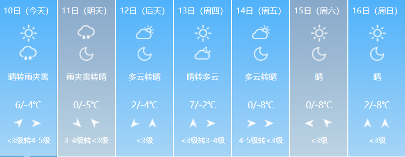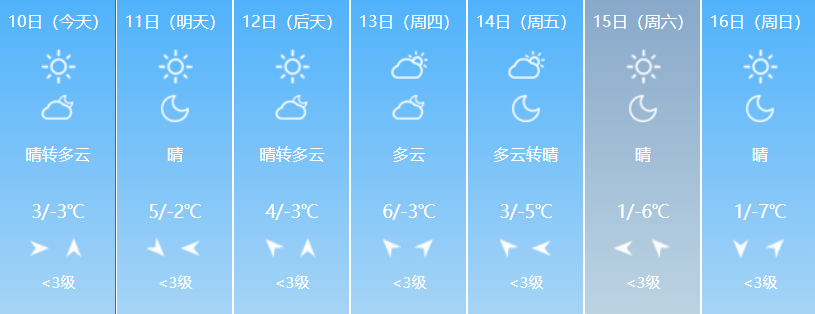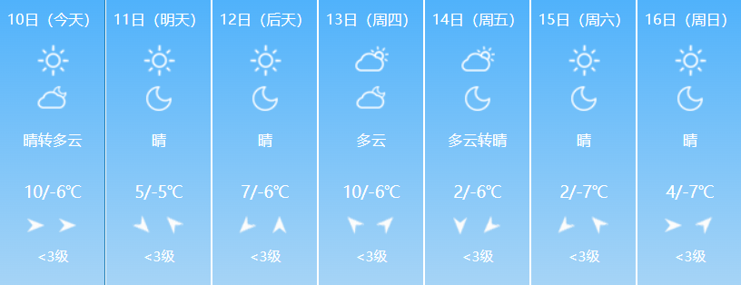 11月10日(周一)夜间至11日(周二)上午,昌吉州大部地区多云,阜康市至木垒县北部局地有微到小雪,西北风6~7级,吉木萨尔县至奇台县北部及木垒县部分地区阵风8级。