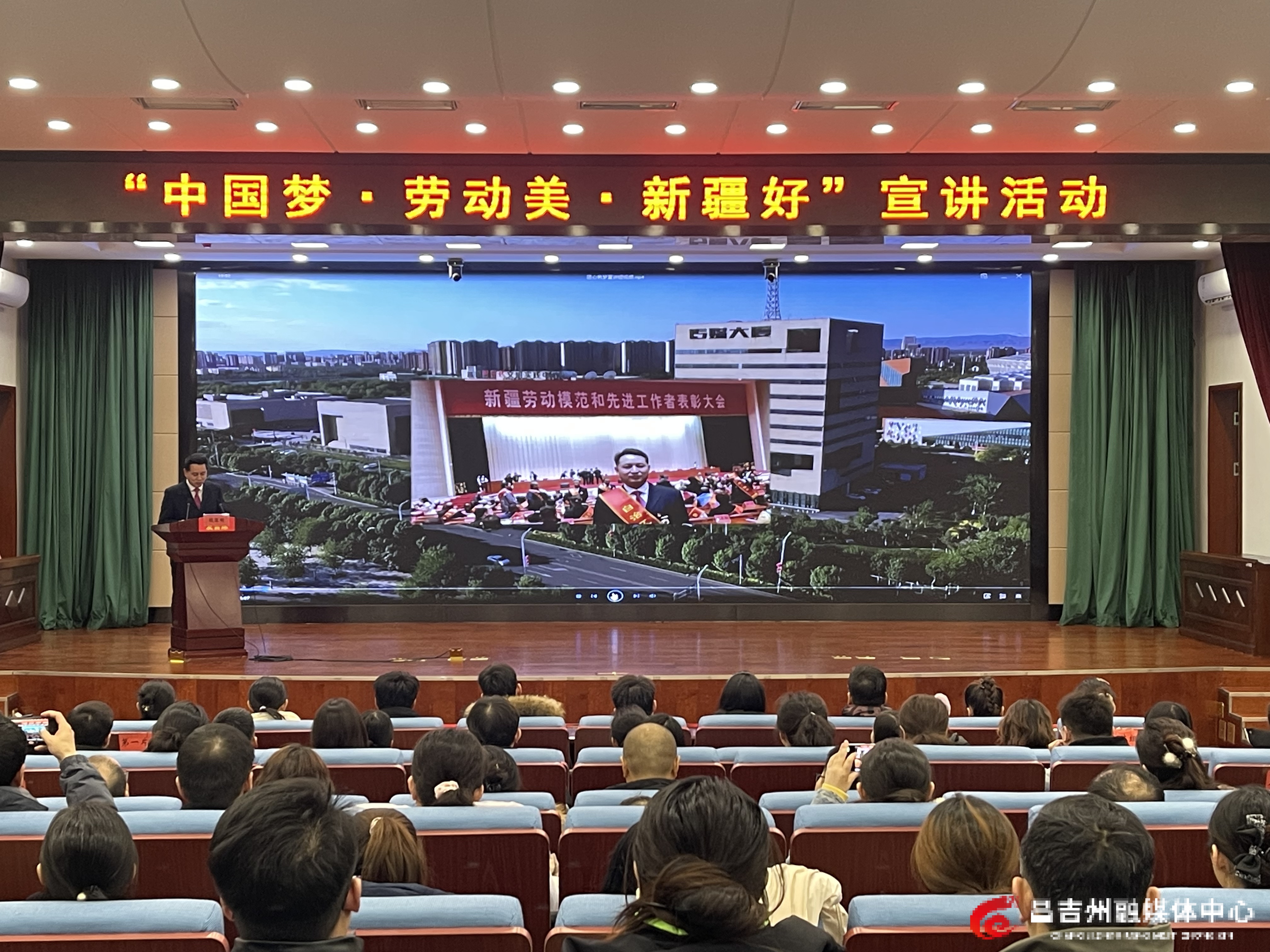 自治区先进工作者葛川在吉木萨尔县开展宣讲,他结合自身岗位经历,深情讲述爱岗敬业、争创一流的奋斗故事,生动诠释了劳模精神的时代内涵,让在场职工深刻感悟到了“劳动创造幸福”的真理力量。