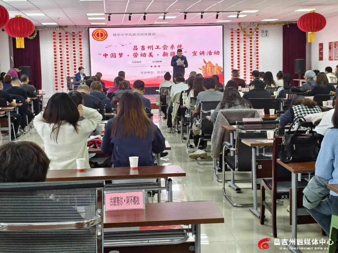 昌吉州工会系统“中国梦·劳动美·新疆好”宣讲活动(呼图壁县专场)现场。图片由昌吉州总工会提供