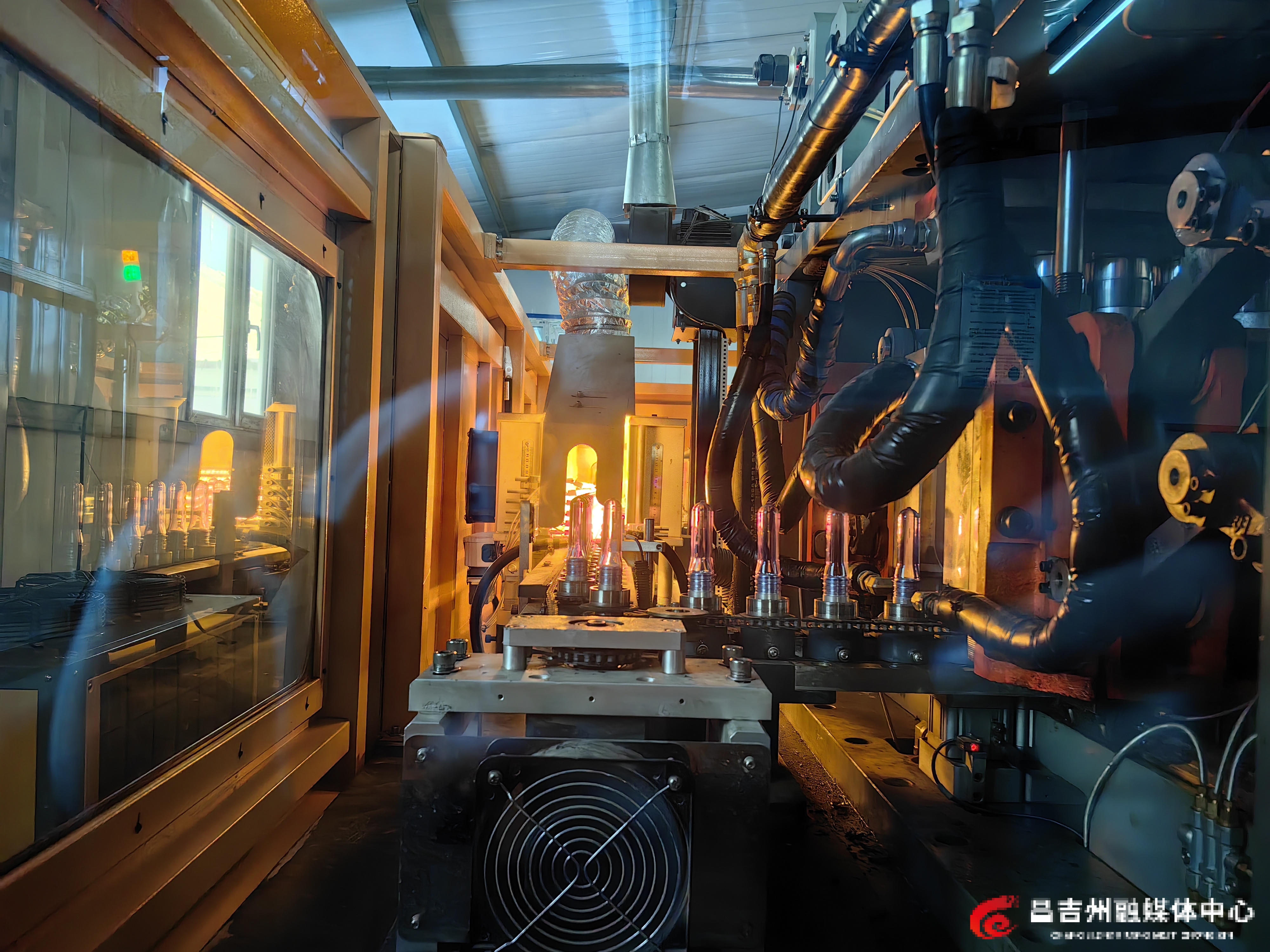 A+ A. A-丝路昌吉/昌吉州融媒体中心讯(记者 刘辉摄影报道)12月22日,在奇台县吉布库镇新疆天山冰客矿泉水有限公司生产车间内,全自动吹瓶机、灌装一体机等设备正在高速运转。原料经过加热、高压吹塑,迅速成型为一个个标准的矿泉水瓶。这些水瓶随即通过输送带进入灌装旋盖一体机进行灌装。转眼之间,一瓶瓶清澈透明的“江布拉克”牌饮用水便依次下线。