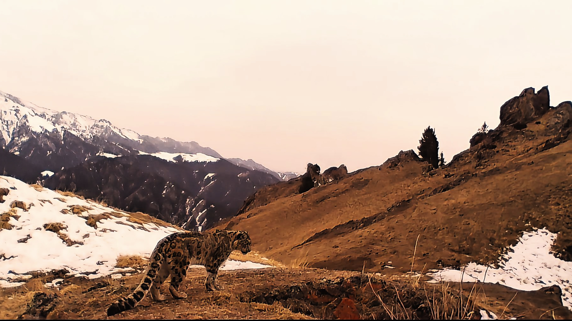 图为红外相机1月1日在海拔1900米处拍摄到的国家一级保护动物雪豹画面。固定红外相机拍摄