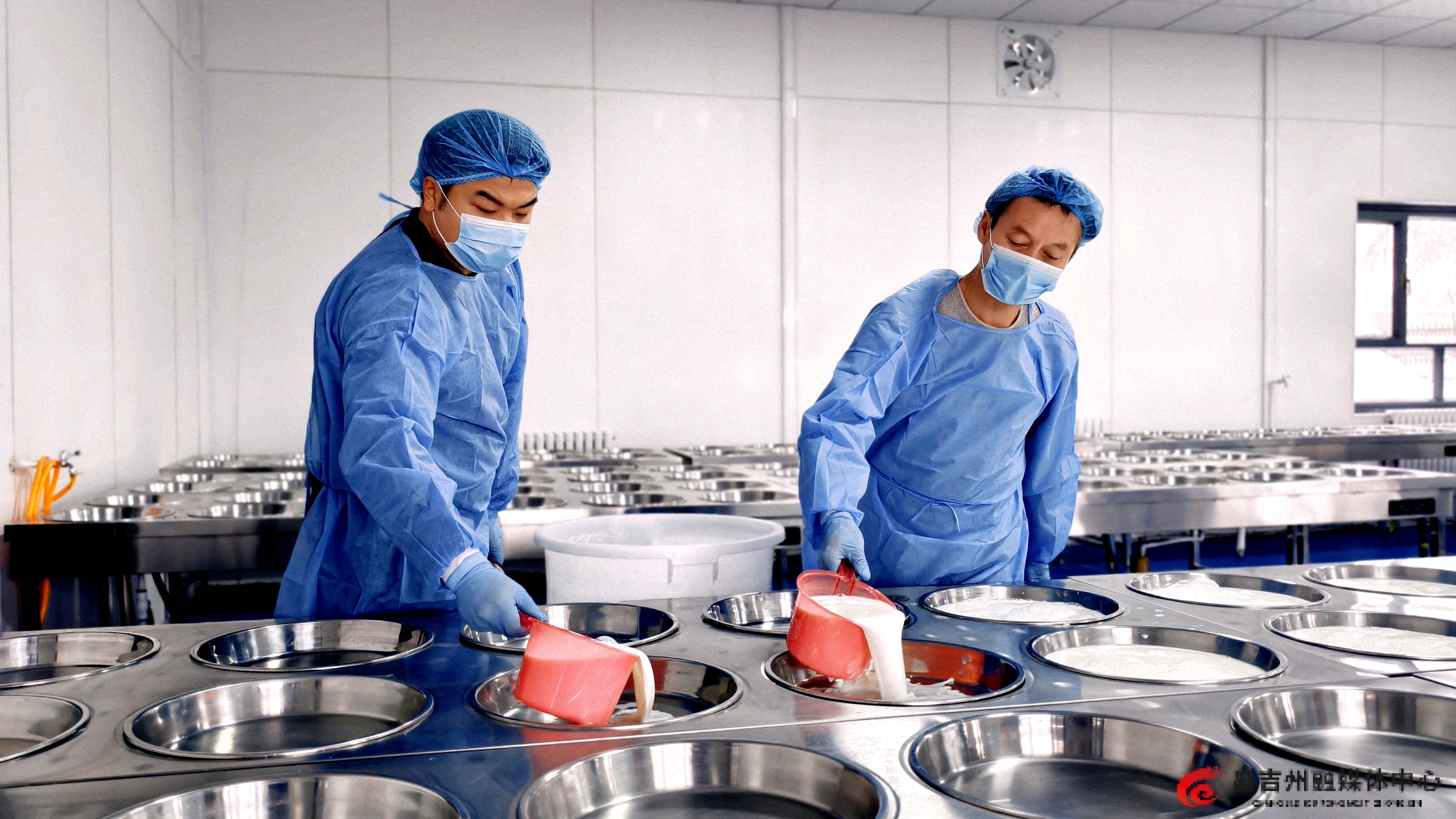 工人往烤奶机中倒入熟牛奶,准备制作奶皮子。记者王薇 摄
