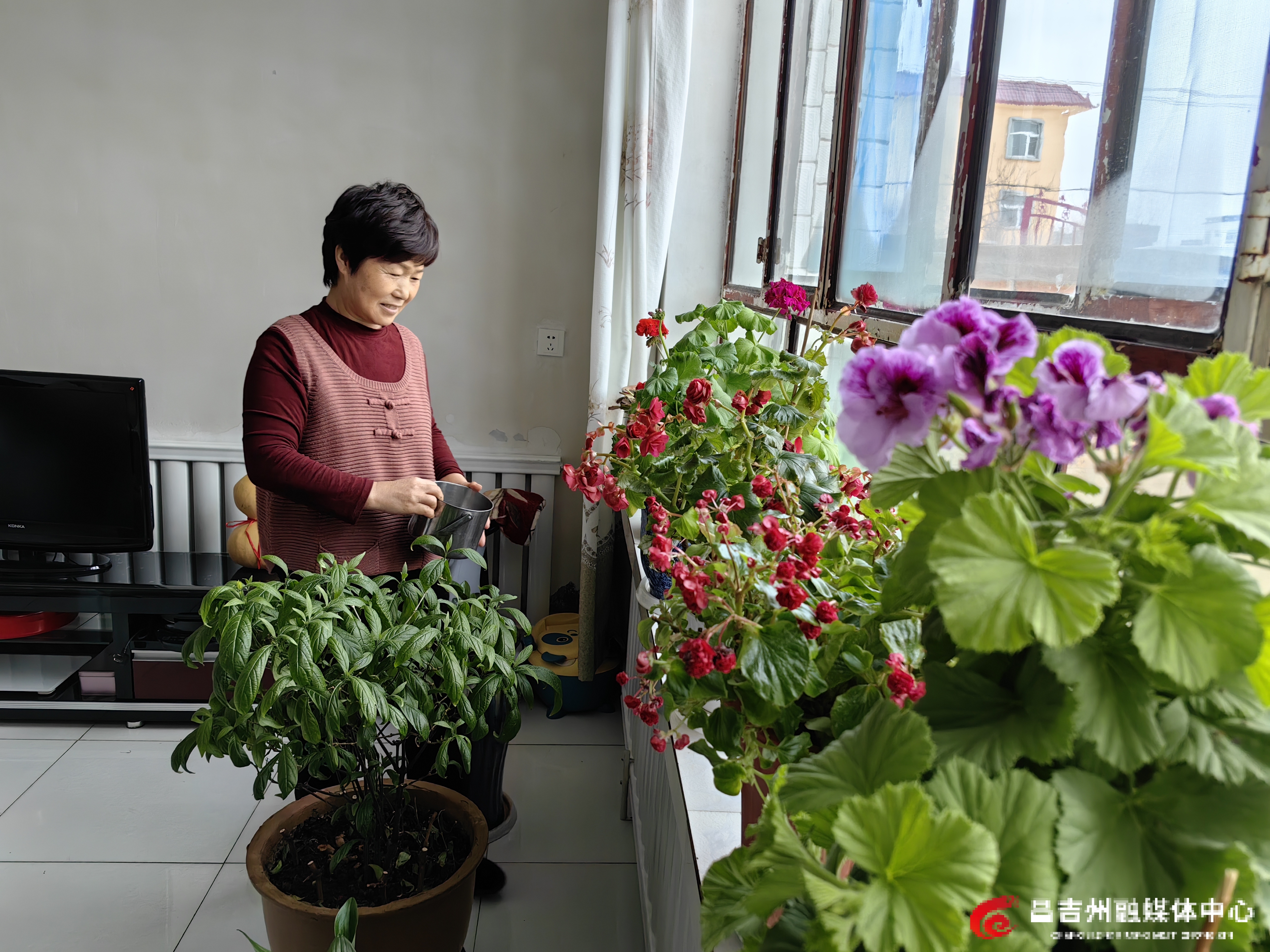 在村民沈志红家的客厅和阳台上,一盆盆鲜花正吐露生机,绣球海棠开得灿烂,君子兰叶片油亮、长势喜人。60岁的沈志红一边收拾房间,一边高兴地说:“儿子一家三口马上就要回来过年了,我得提前收拾一下!”
