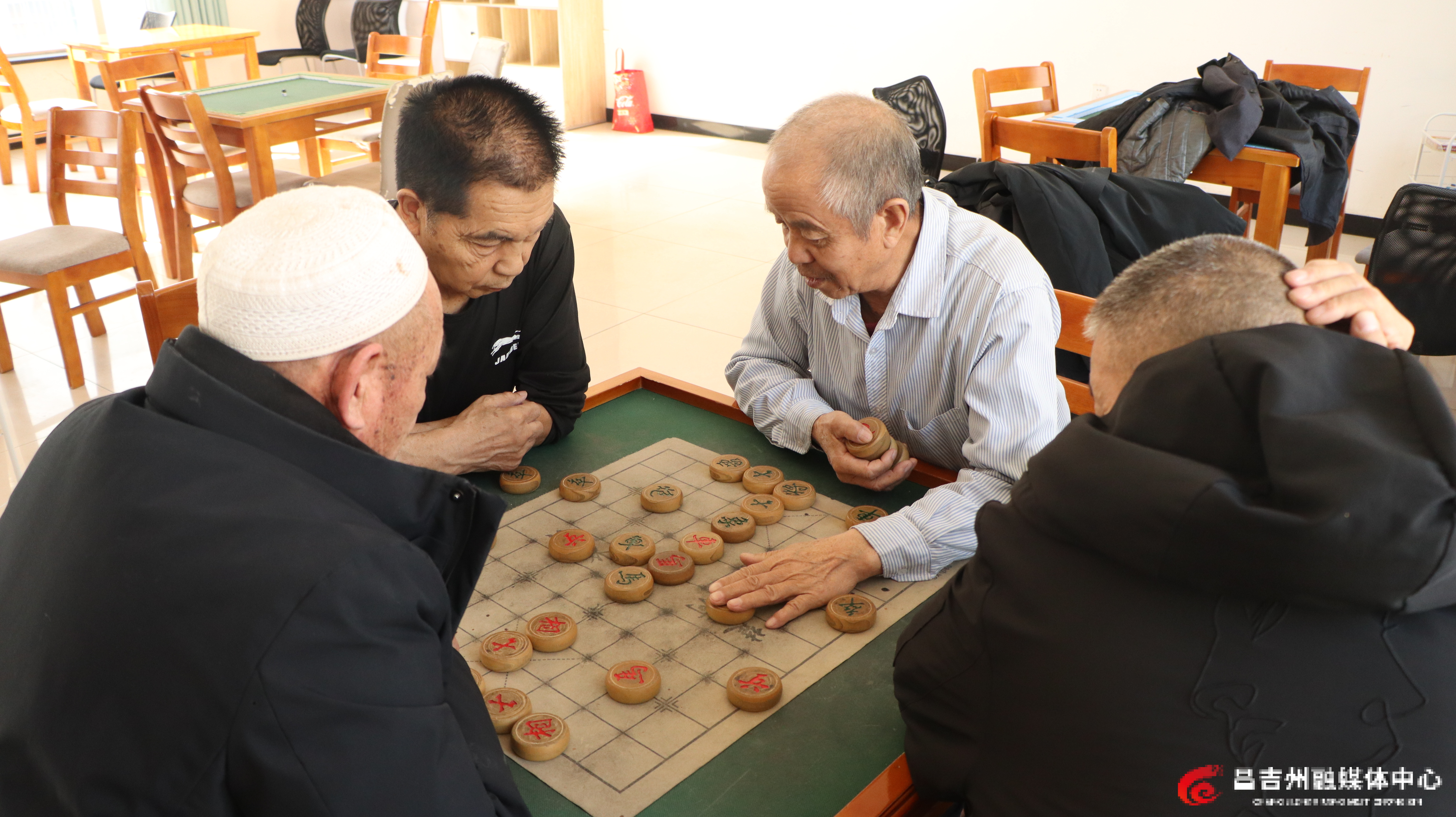 2月26日,呼图壁县呼图壁镇花城社区居民正在下象棋。记者杨鹤 摄