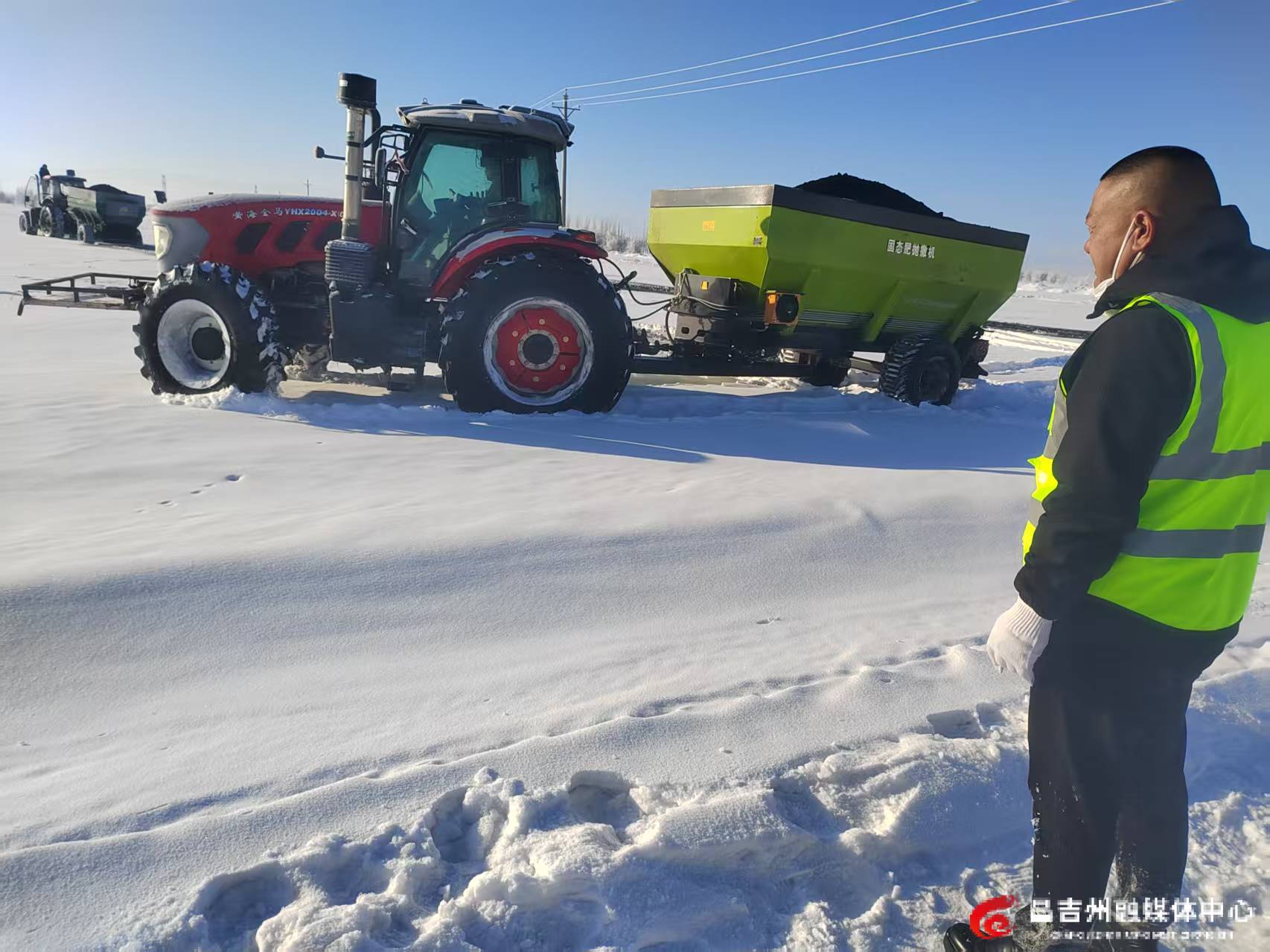 一场春雪让戈壁农田披上了厚厚的棉被,据技术人员介绍,此时虽然地还上冻,但有机肥会随着积雪融化渗入耕地,对提升肥力有极好的帮助。