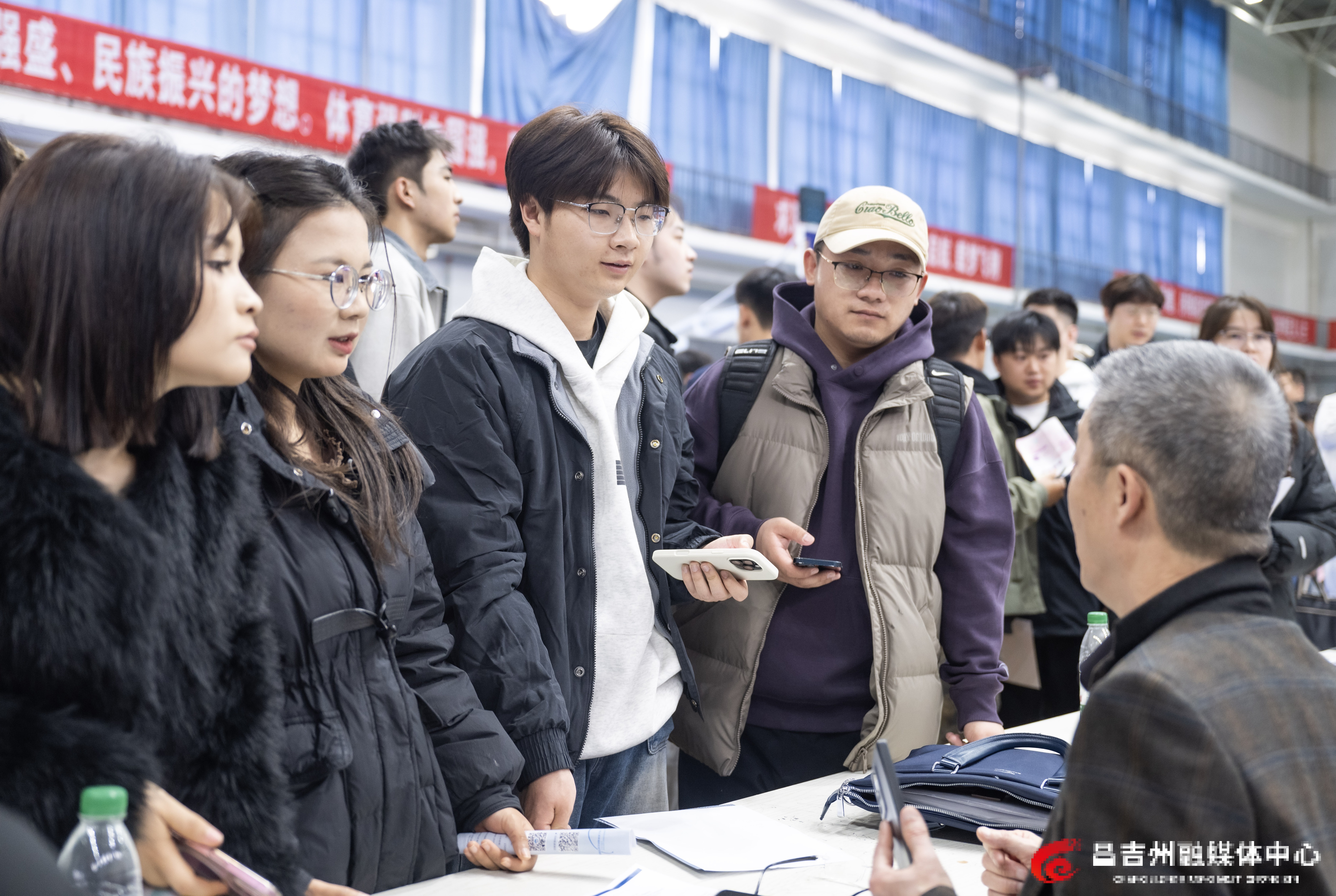 3月18日,昌吉学院体育馆,职引未来——昌吉州2026年城市联合招聘高校毕业生暨昌吉学院春季专场招聘会,学生在咨询就业岗位。