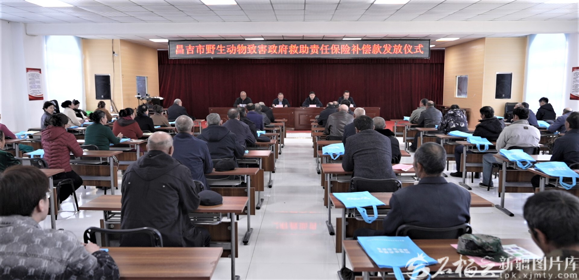 3月23日,昌吉市首例野生动物致害政府救助责任保险补偿款发放仪式,在昌吉市阿什里哈萨克族乡努尔加村村民活动中心举行,7户牧民共领到4.5万元政府救助保险补偿款。