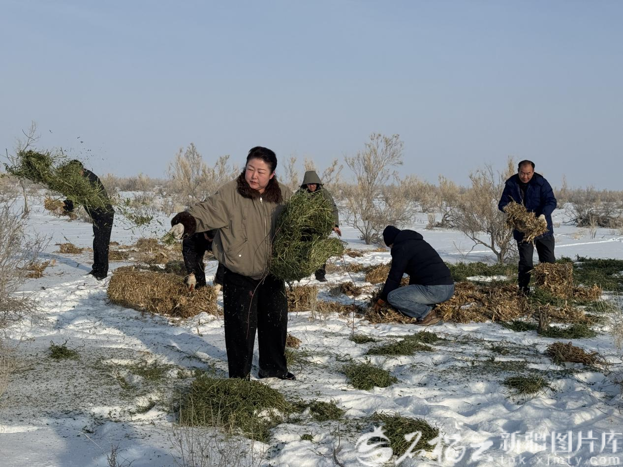 1月13日,昌吉市北部荒漠生态保护管理站工作人员在北部荒漠给野生动物投放饲草料。李瑞瑞摄