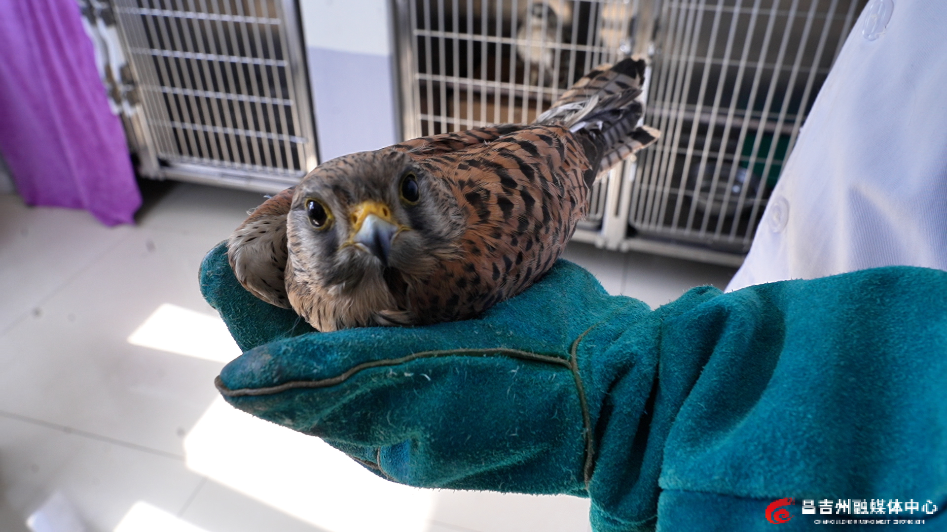 经昌吉市林草局工作人员初步鉴定,确认这只鸟为国家二级保护野生动物红隼幼鸟,初步检查发现其右翅骨折,且体型瘦弱,状态不佳,急需专业救治,随即将受伤红隼转运至昌吉市专心动物医院。