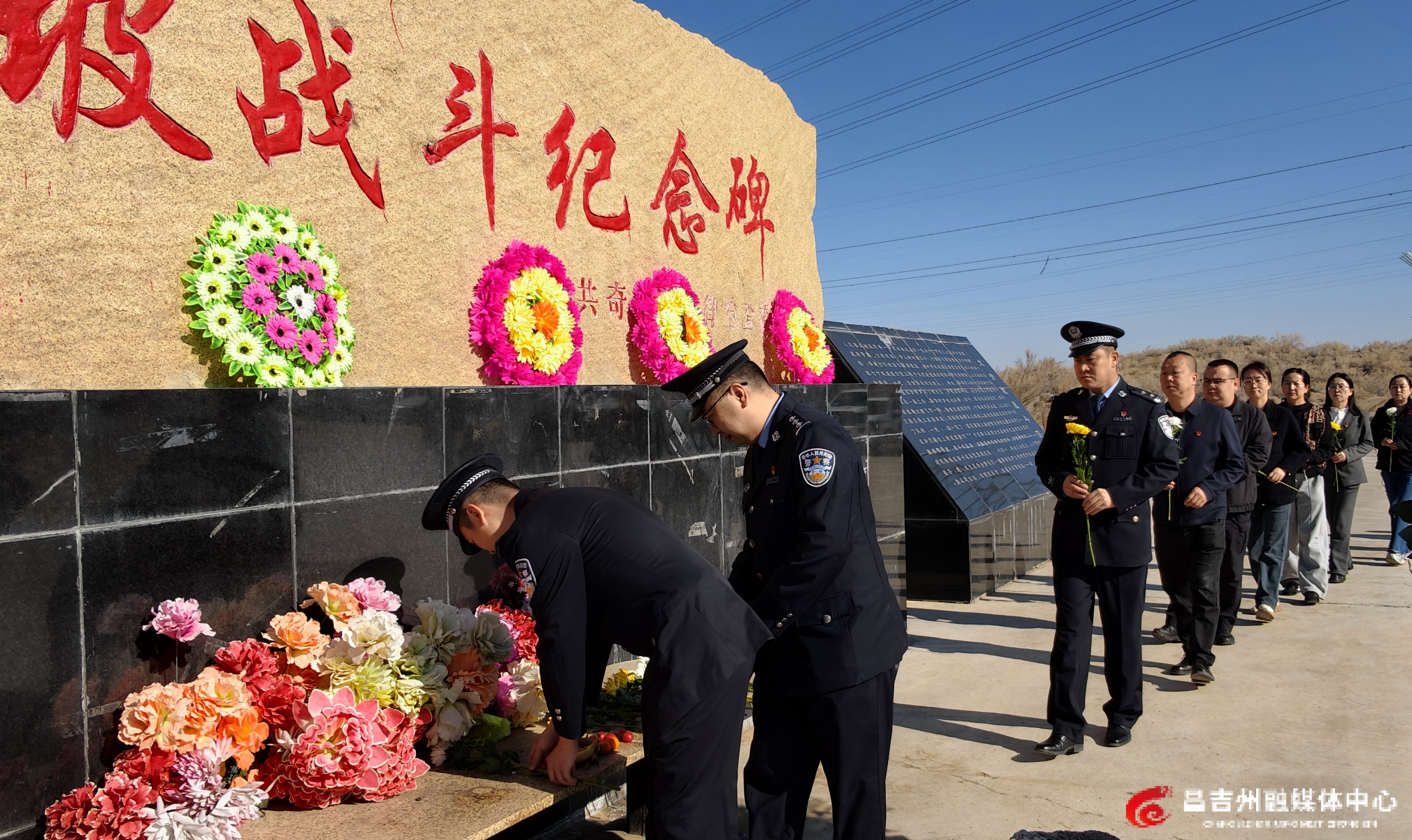 全体民警、党员干部向烈士敬献鲜花,表达敬意。通讯员张景亮 摄