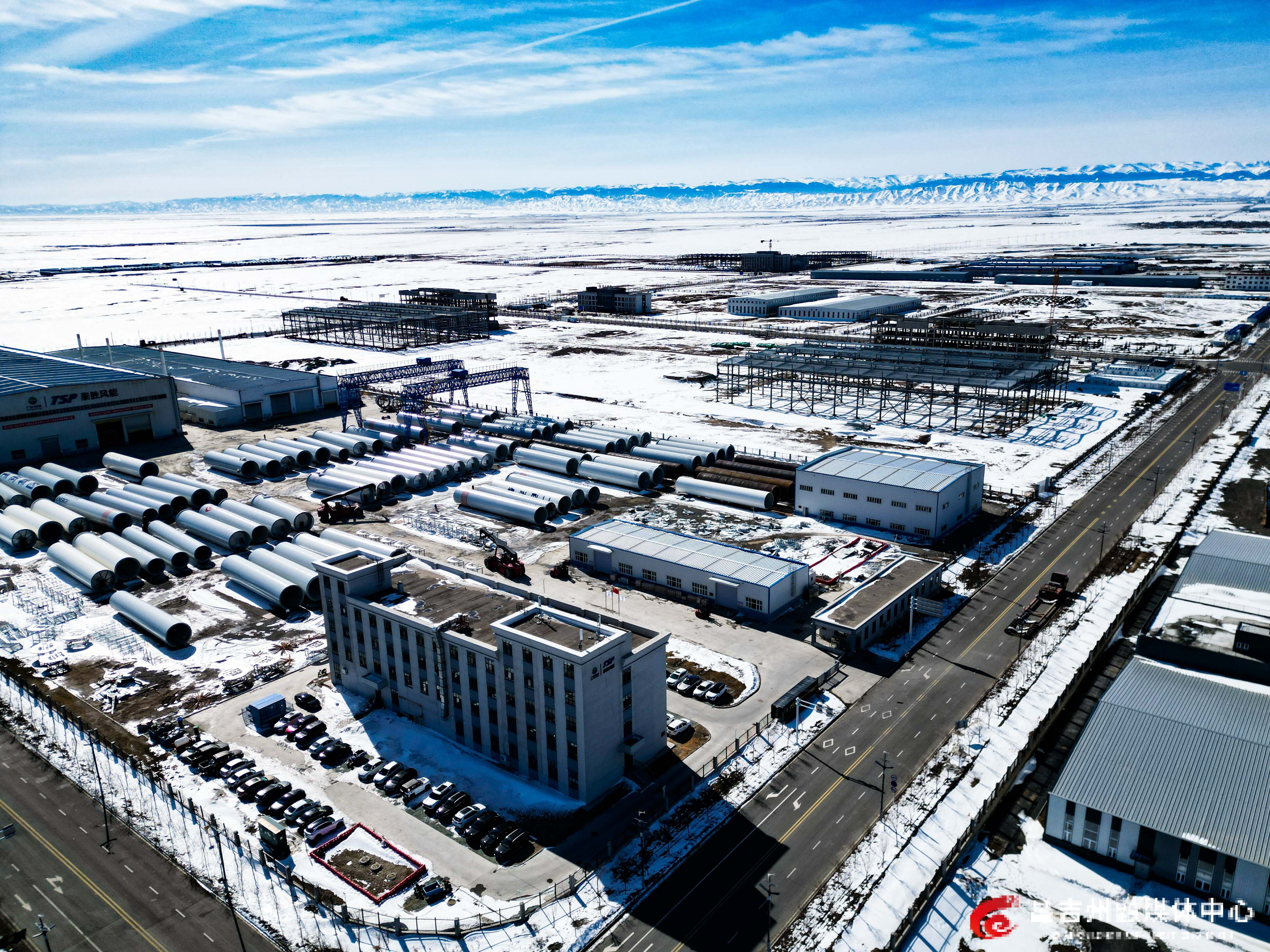 3月17日,木垒县新能源装备制造基地内,昌吉州泰胜风能风电设备有限公司摆满生产出的风机塔筒。记者常谊谊 摄