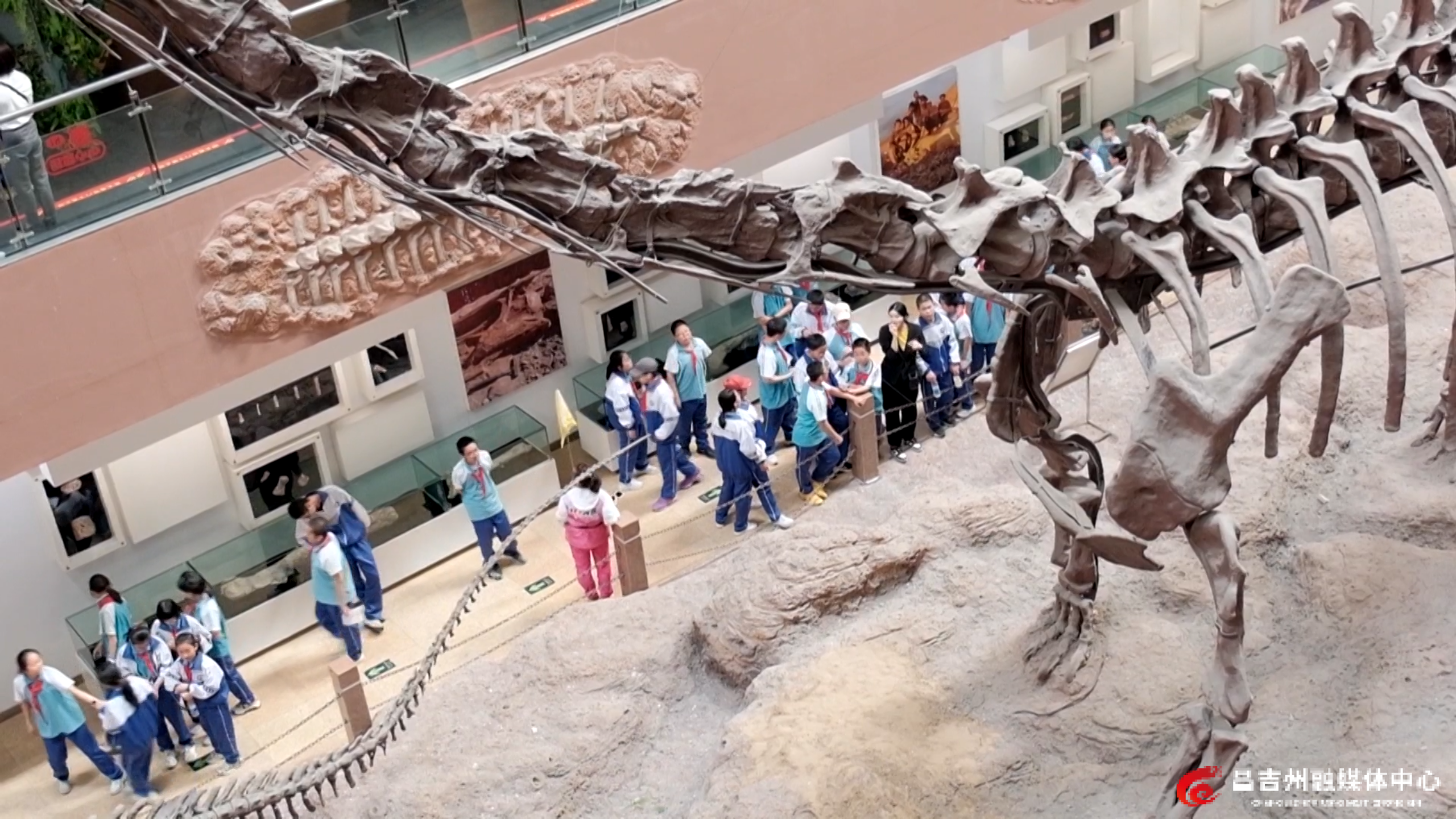 在昌吉恐龙馆,学生们体验科普互动。通讯员叶尔克西 摄