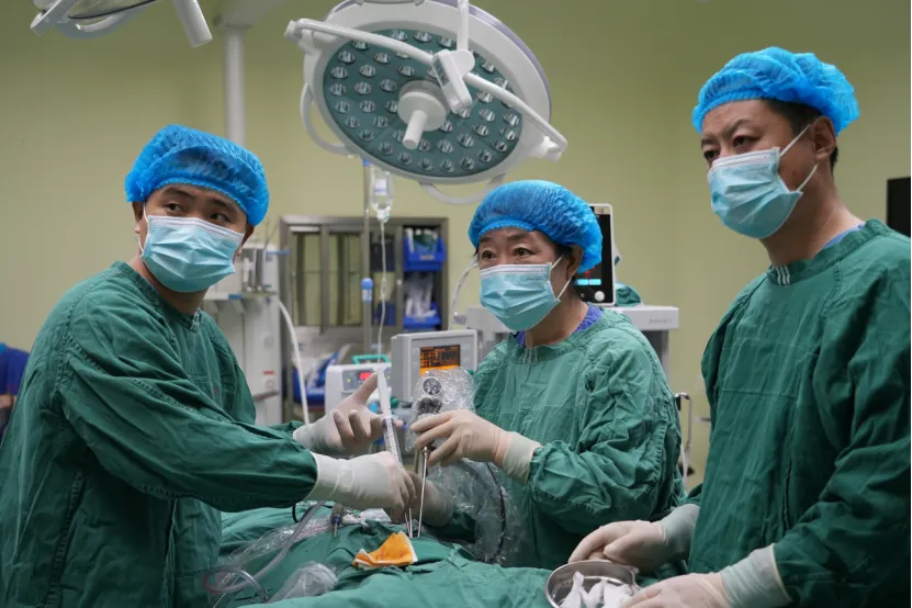 杨向茹(中)在阜康市人民医院开展手术。受访者提供