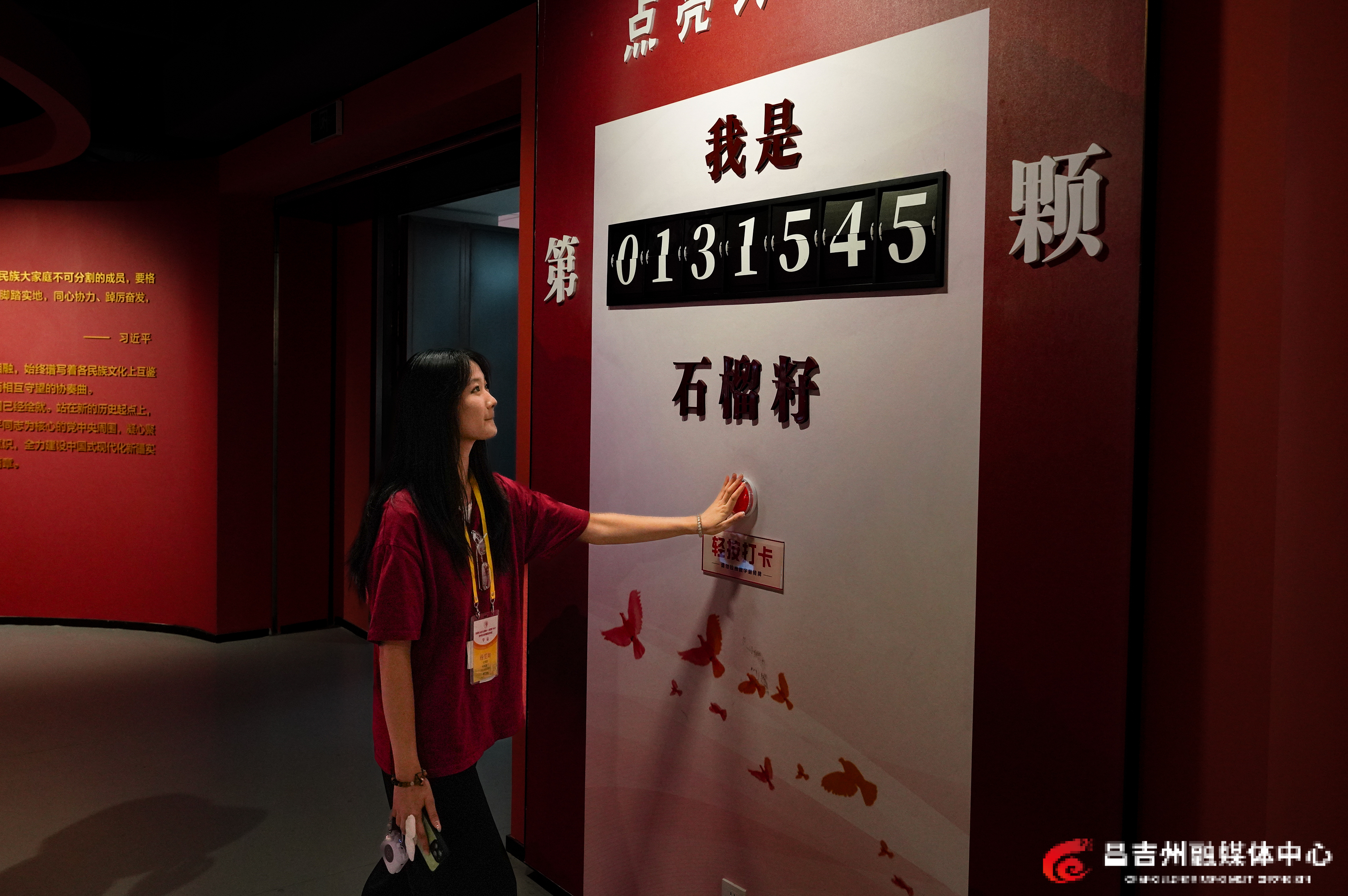 8月8日,“泉昌情·心连京·丝路缘——祖国情·中华行”赴新疆(昌吉)研学活动的华侨大学师生走进昌吉州铸牢中华民族共同体意识主题馆。图为学生杨雯如在参观打卡。记者常谊谊 摄