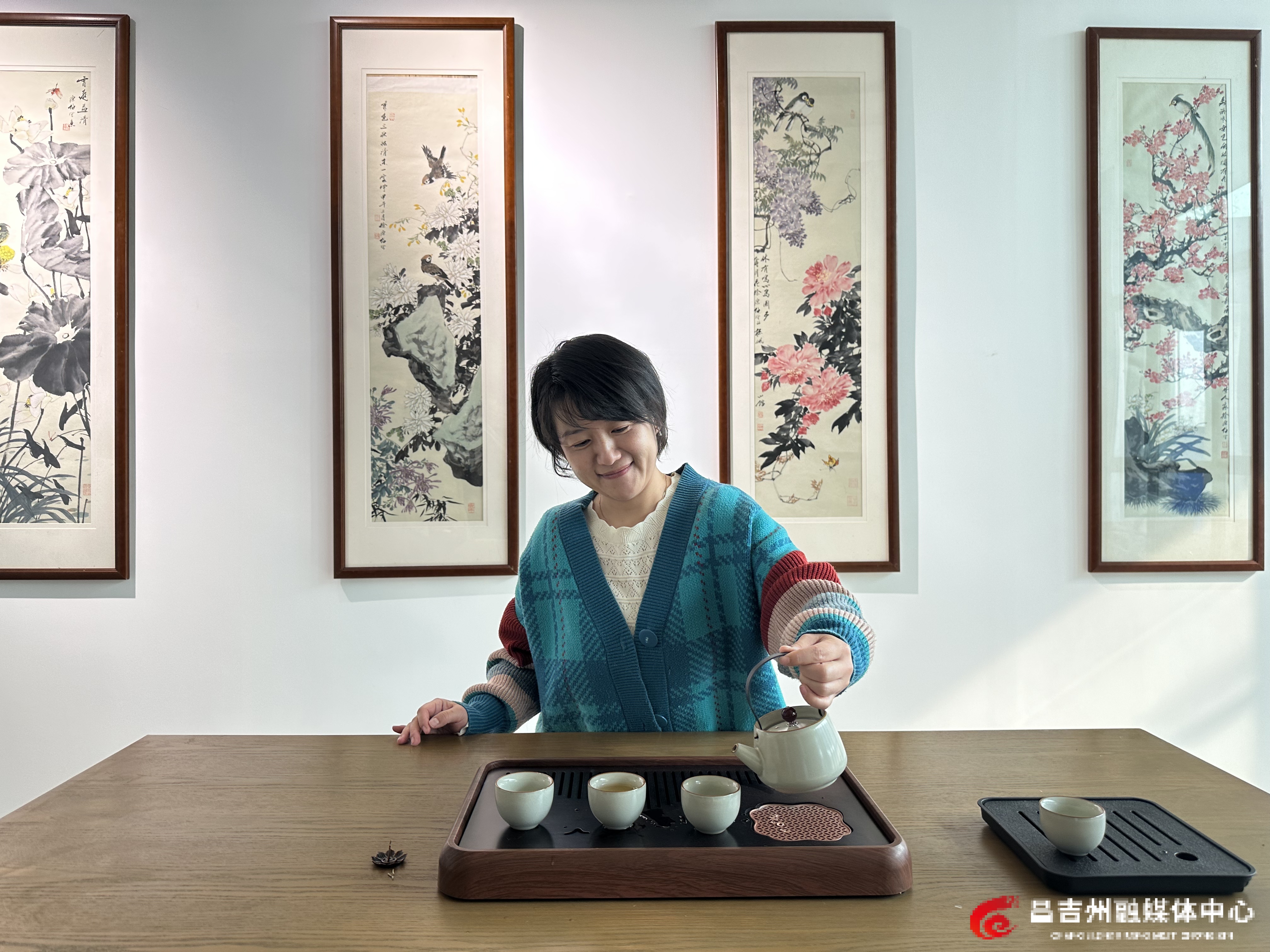10月23日,昌吉市民正在体验泡茶。记者王婷 摄