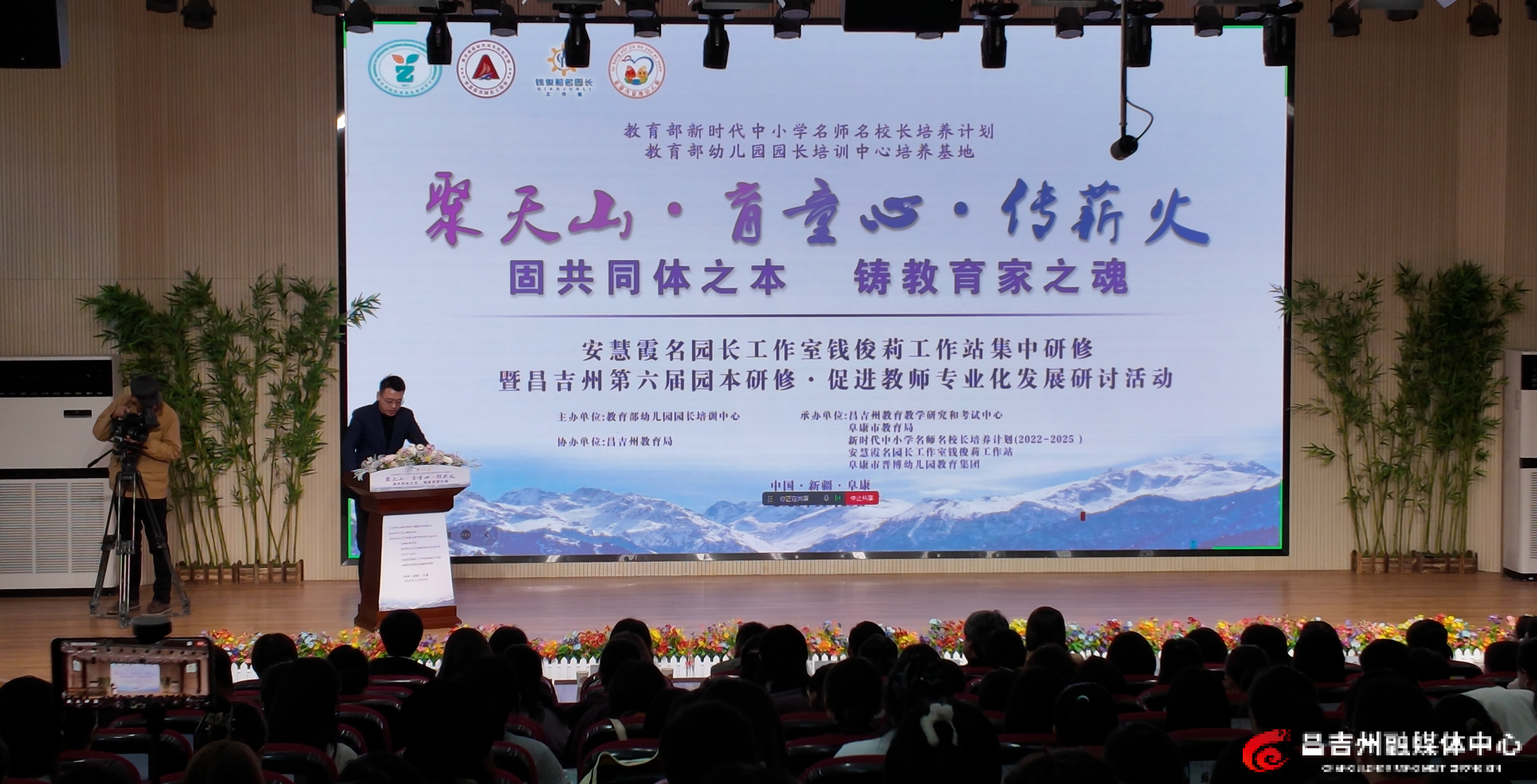 此次活动由教育部幼儿园园长培训中心主办,昌吉州教育局协办,昌吉州教育教学学研究和考试中心、阜康市教育局、教育部新时代“双名计划”安慧霞名园长工作室钱俊莉工作站、阜康市晋博幼儿园教育集团承办,以“聚天山·育童心·传薪火——固共同体之本,铸教育家之魂”为主题,开展了主题学术研讨、实地考察观摩等活动。