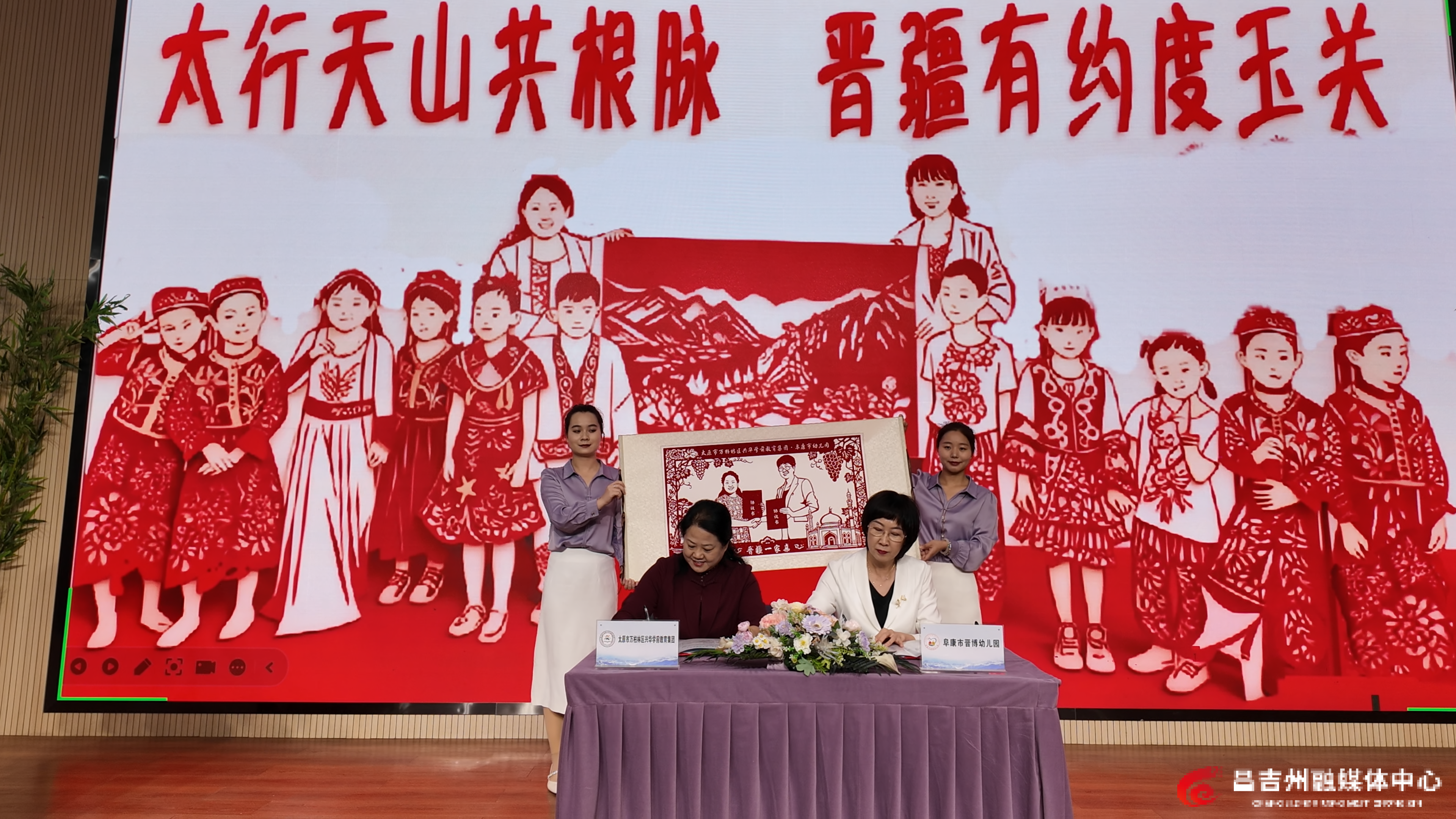 活动中,全国教书育人楷模、太原市万柏林区兴华学前教育集团总园长安慧霞被聘为阜康市学前教育发展指导专家,钱俊莉工作站与安慧霞名园长工作室完成合作续签约,双方将进一步聚焦阜康学前教育发展需求,在教育理念传播、课程体系构建、师资队伍培养等方面开展合作交流。