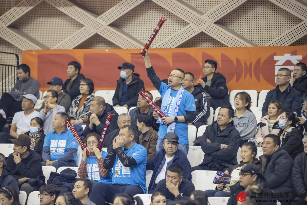 12月10日,昌吉体育馆,现场球迷为球员加油打气。