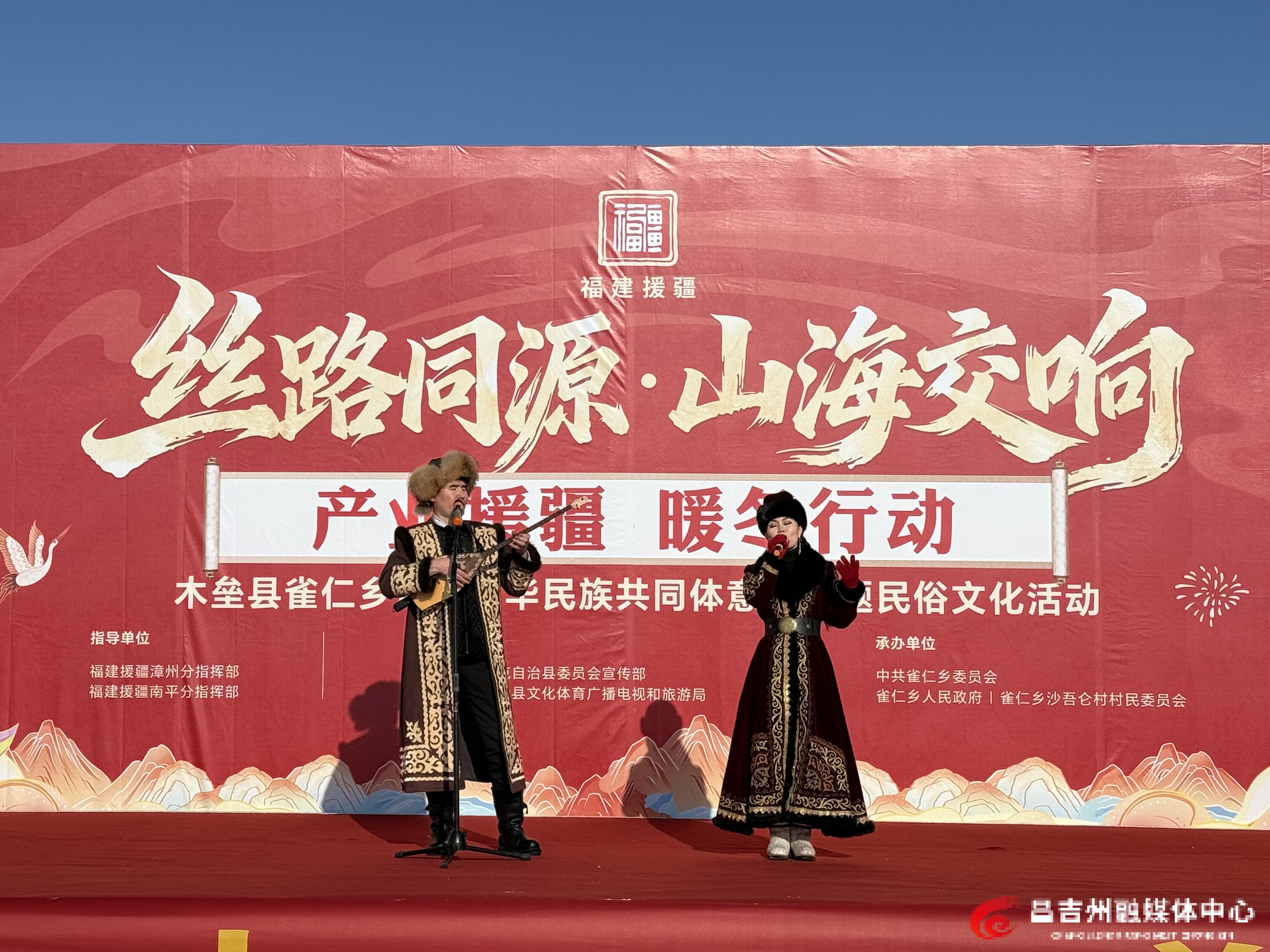 A+ A. A-丝路昌吉/昌吉州融媒体中心讯(记者 杨晓溢报道)1月9日,“丝路同源·山海交响 产业援疆暖冬行动”木垒县雀仁乡铸牢中华民族共同体意识主题民俗文化活动在雀仁乡沙吾仑村精彩开幕。本次活动以文化为纽带,以产业为桥梁,生动展现了新时代木垒县各族群众交往交流交融、同心共创美好生活的生动画卷。