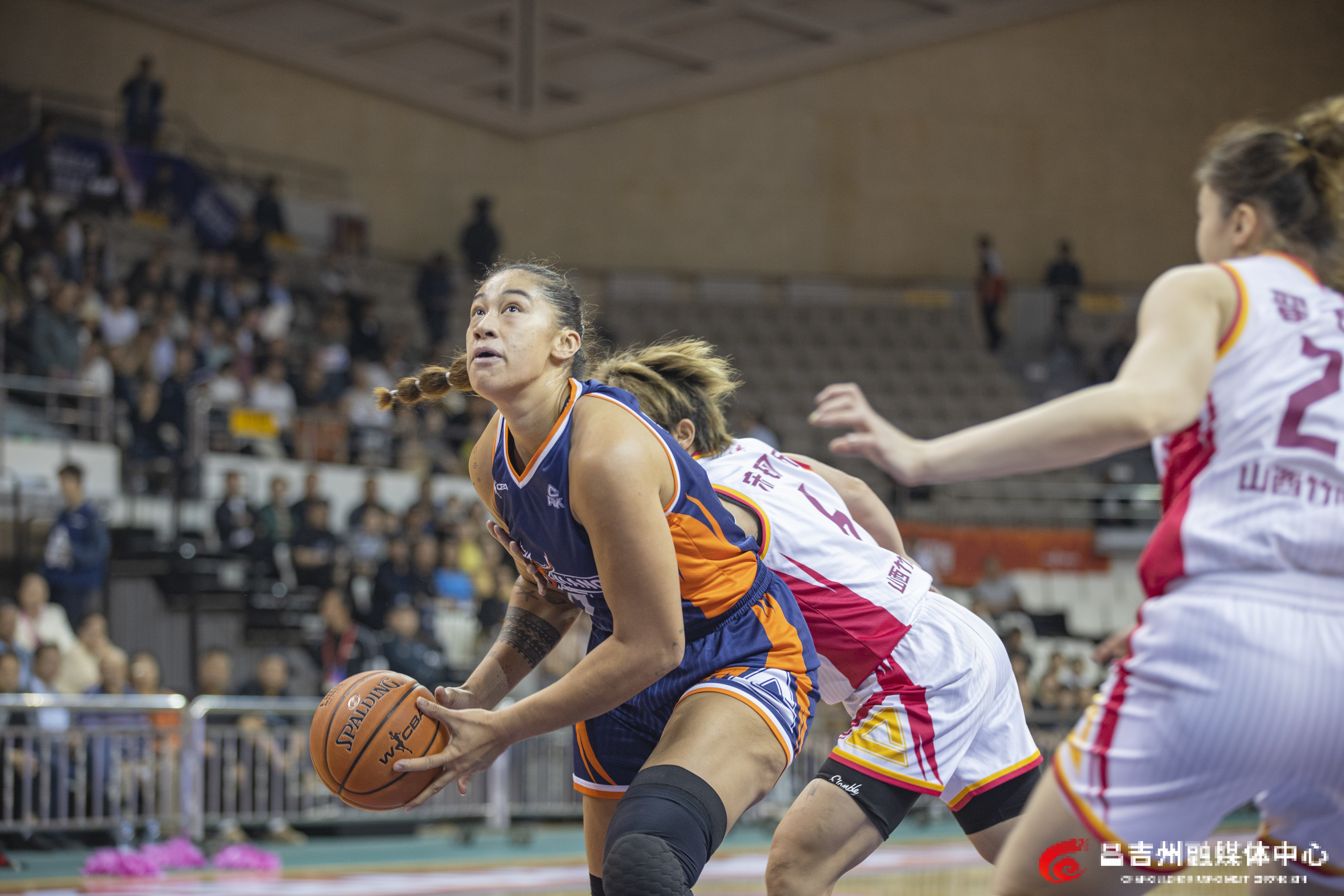 4月8日,昌吉体育馆,新疆天山女篮球员篮下进攻。