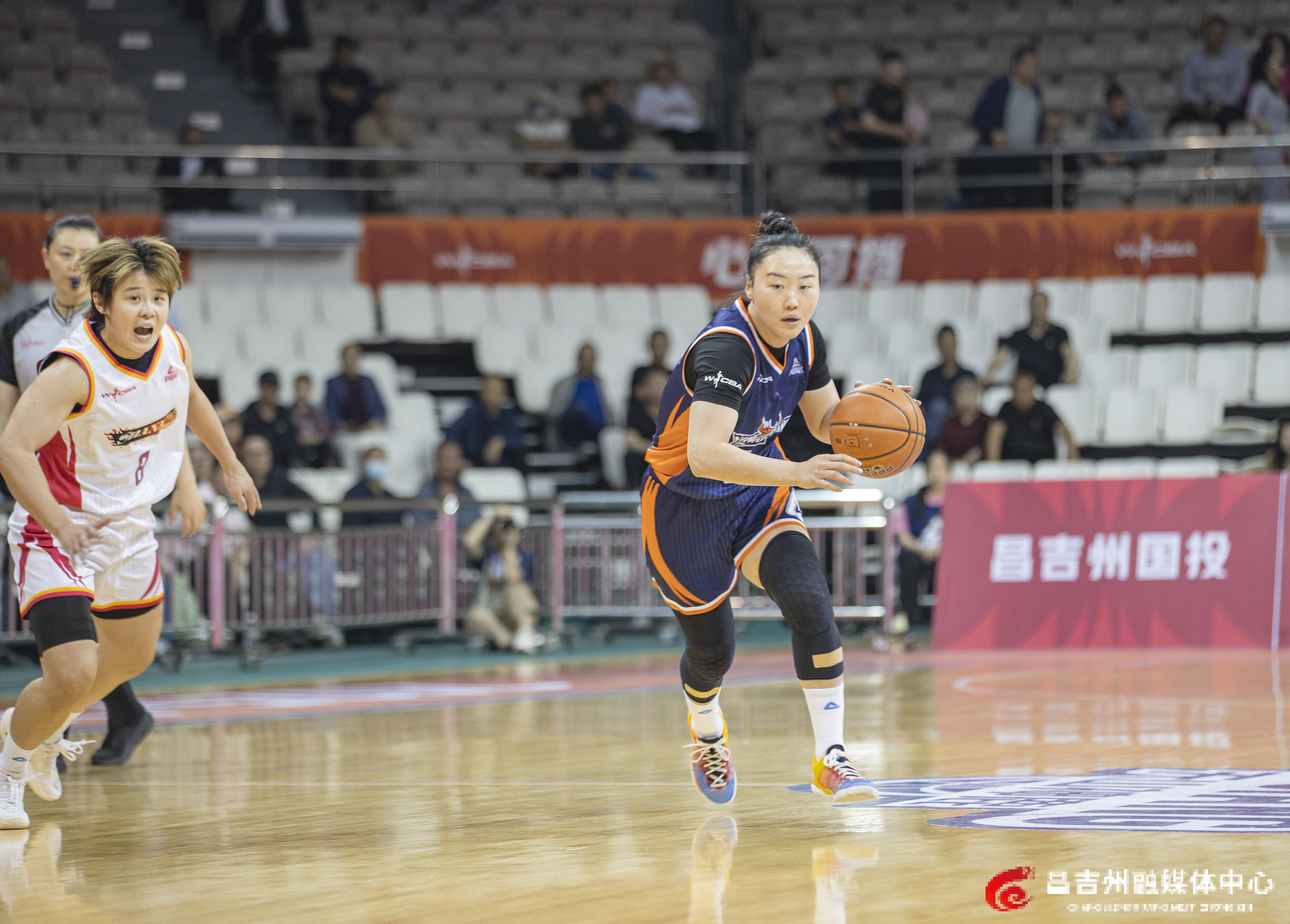 4月8日,昌吉体育馆,新疆天山女篮球员运球突破。
