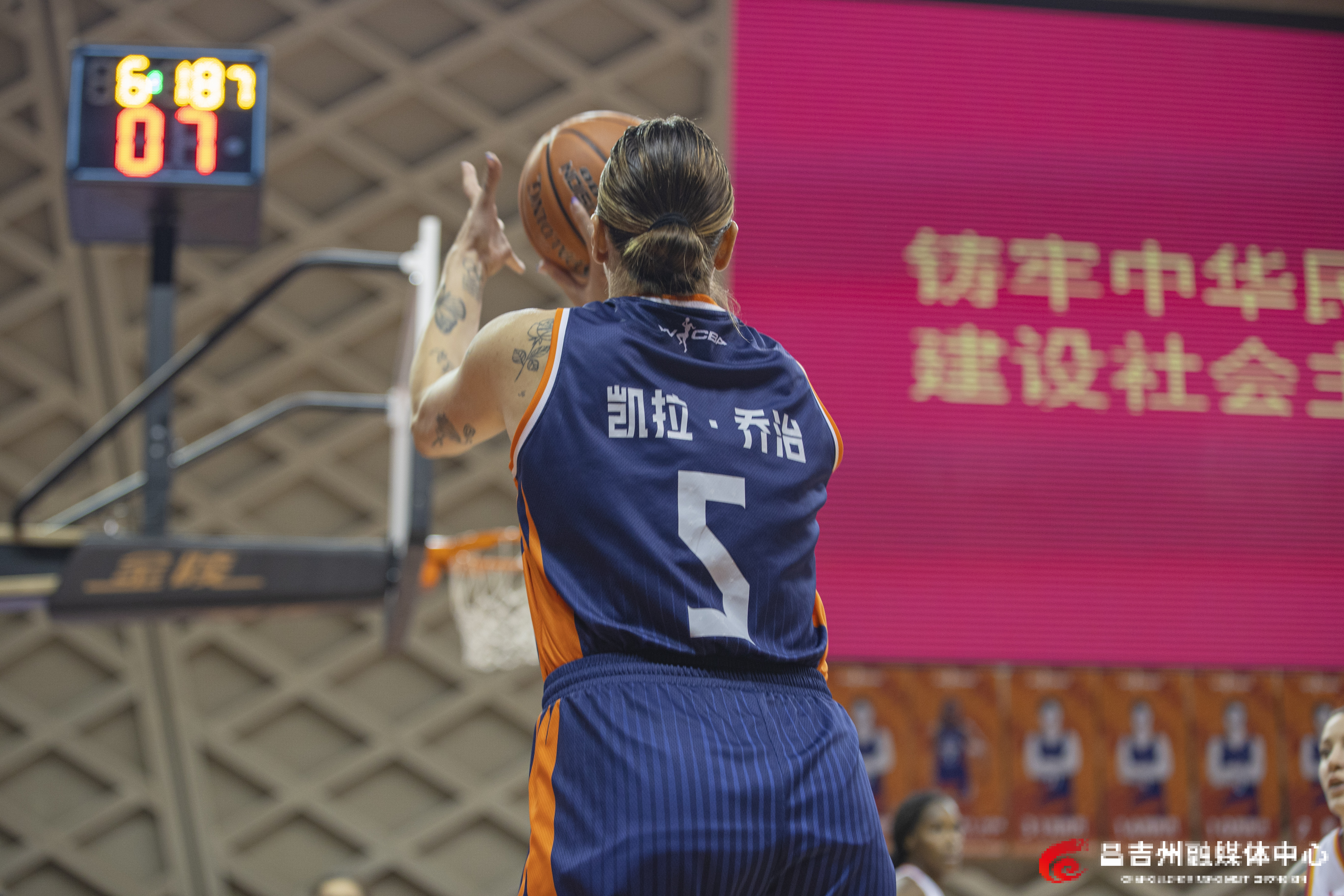 4月8日,昌吉体育馆,新疆天山女篮球员跳投出手。