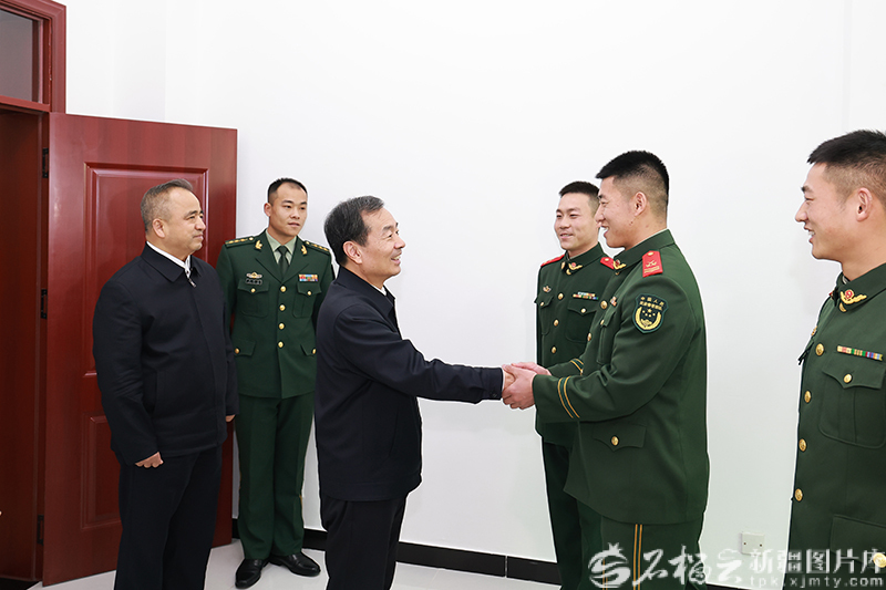 2月13日,自治区党委书记陈小江、自治区主席艾尔肯·吐尼亚孜在武警新疆总队南疆某部,看望慰问部队官兵。石榴云/新疆日报记者 崔志坚摄