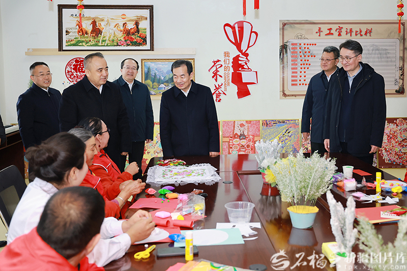 2月14日,自治区党委书记陈小江、自治区主席艾尔肯·吐尼亚孜在阿图什市中心敬老院,为各族老年人送上新春祝福。石榴云/新疆日报记者 崔志坚摄