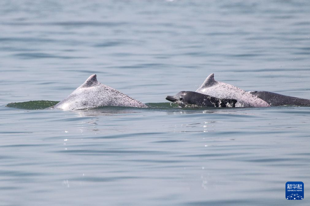 科研人员在海南岛西南海域目击到大量中华白海豚